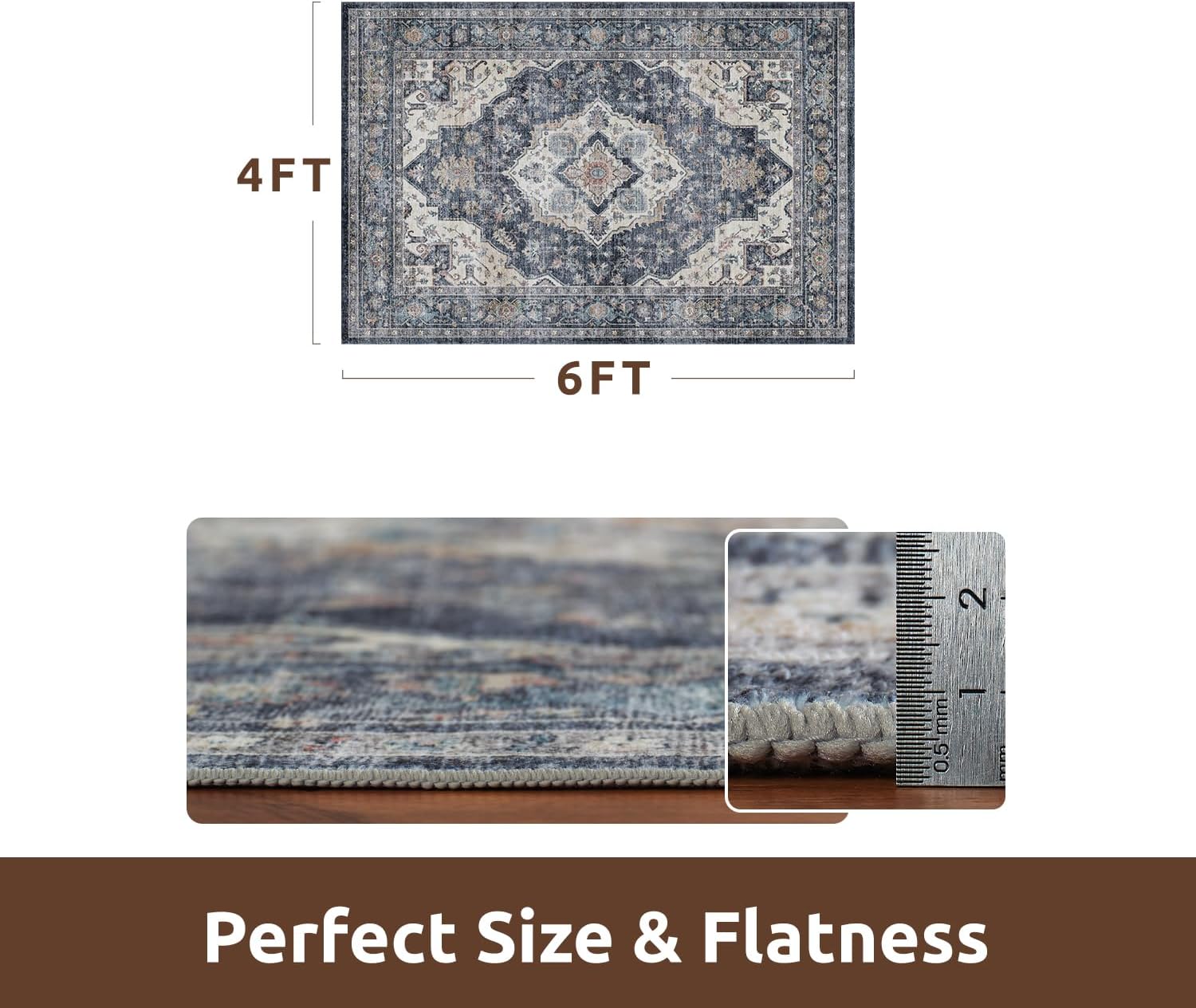 AMOAMI-4X6 Area Rugs for Living Room -Soft Vintage Bedroom Rugs-Non Slip Washable Rug-Throw for Living Room Bedroom Bedside Dining Room Office Blue