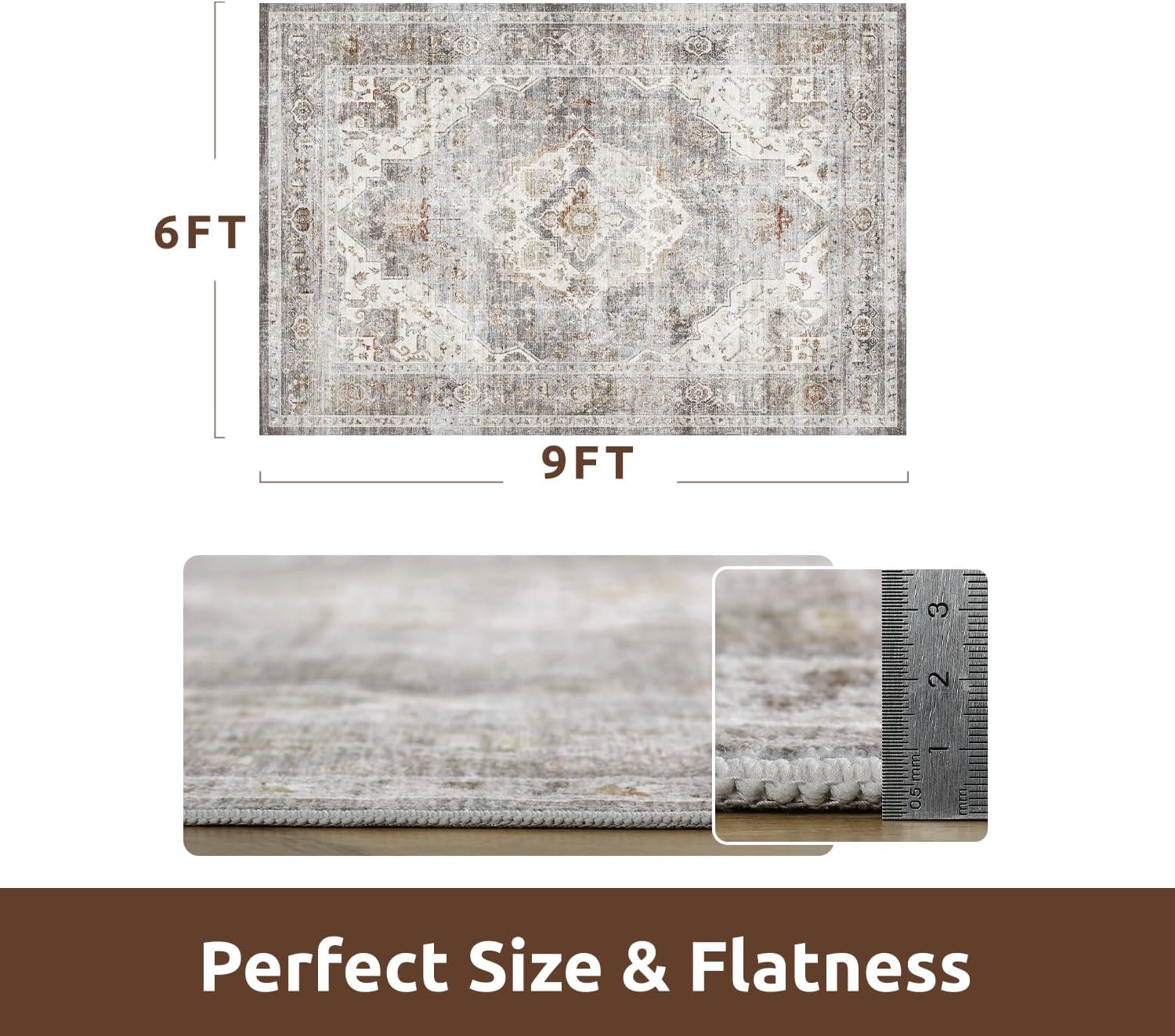 AMOAMI-Area Rug 6X9 Rugs for Living Room-Vintage Soft Grey Rugs for Bedroom-Non Slip Carpet-Machine Washable Rug for Dining Room Living Room Bedroom Office Under Table
