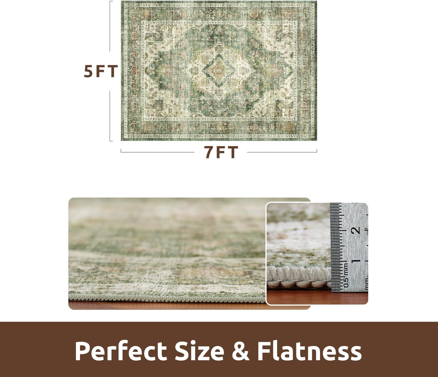 AMOAMI-Area Rug 5X7 Rugs for Living Room-Vintage Soft Green Rugs for Bedroom-Non Slip Carpet-Machine Washable Rug for Dining Room Living Room Bedroom Office Under Table