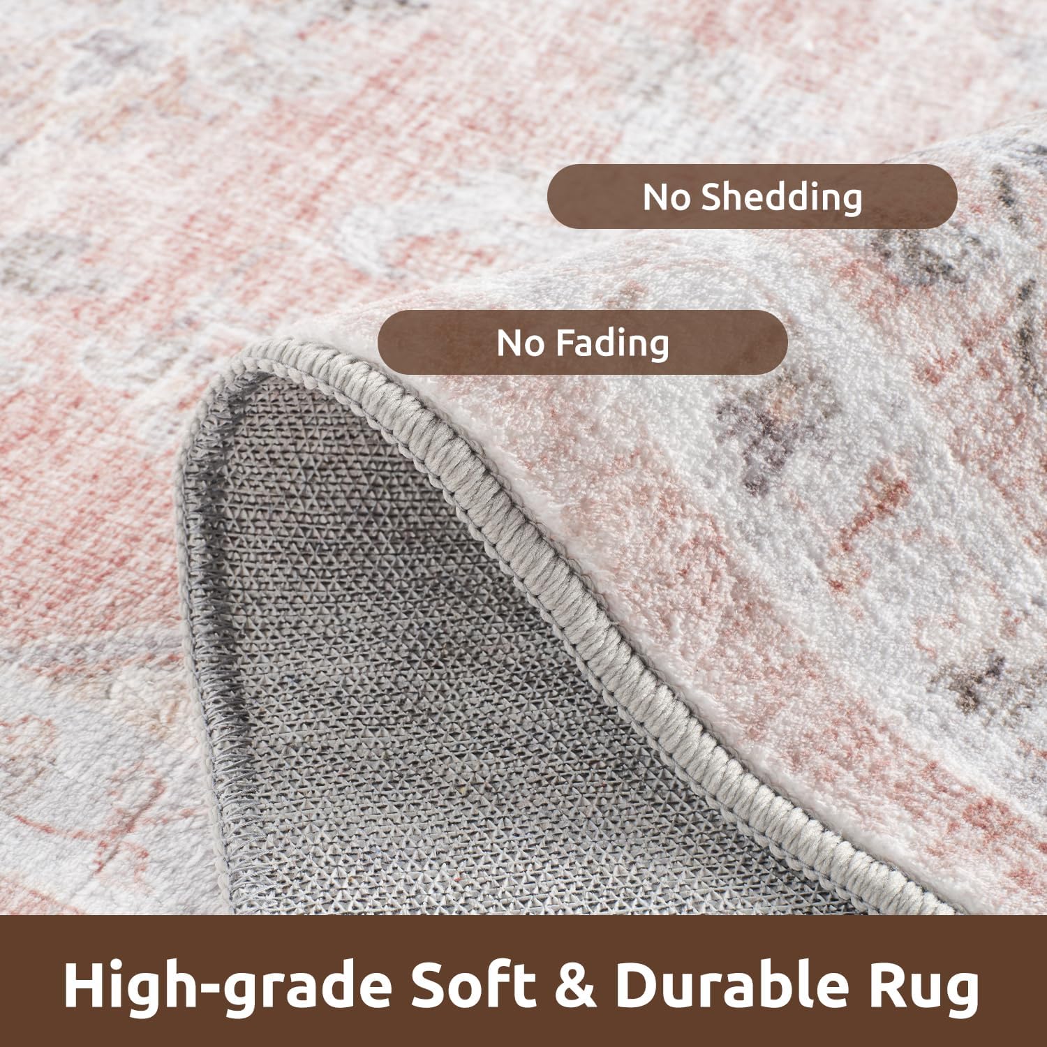 AMOAMI-2X10 Runner Rug-Washable Runners for Hallways-Soft Non Slip Bedside Rugs for Bedroom-Vintage Long Rug for Hallways Entryway Laundry Room Stair Kitchen Bathroom Pink