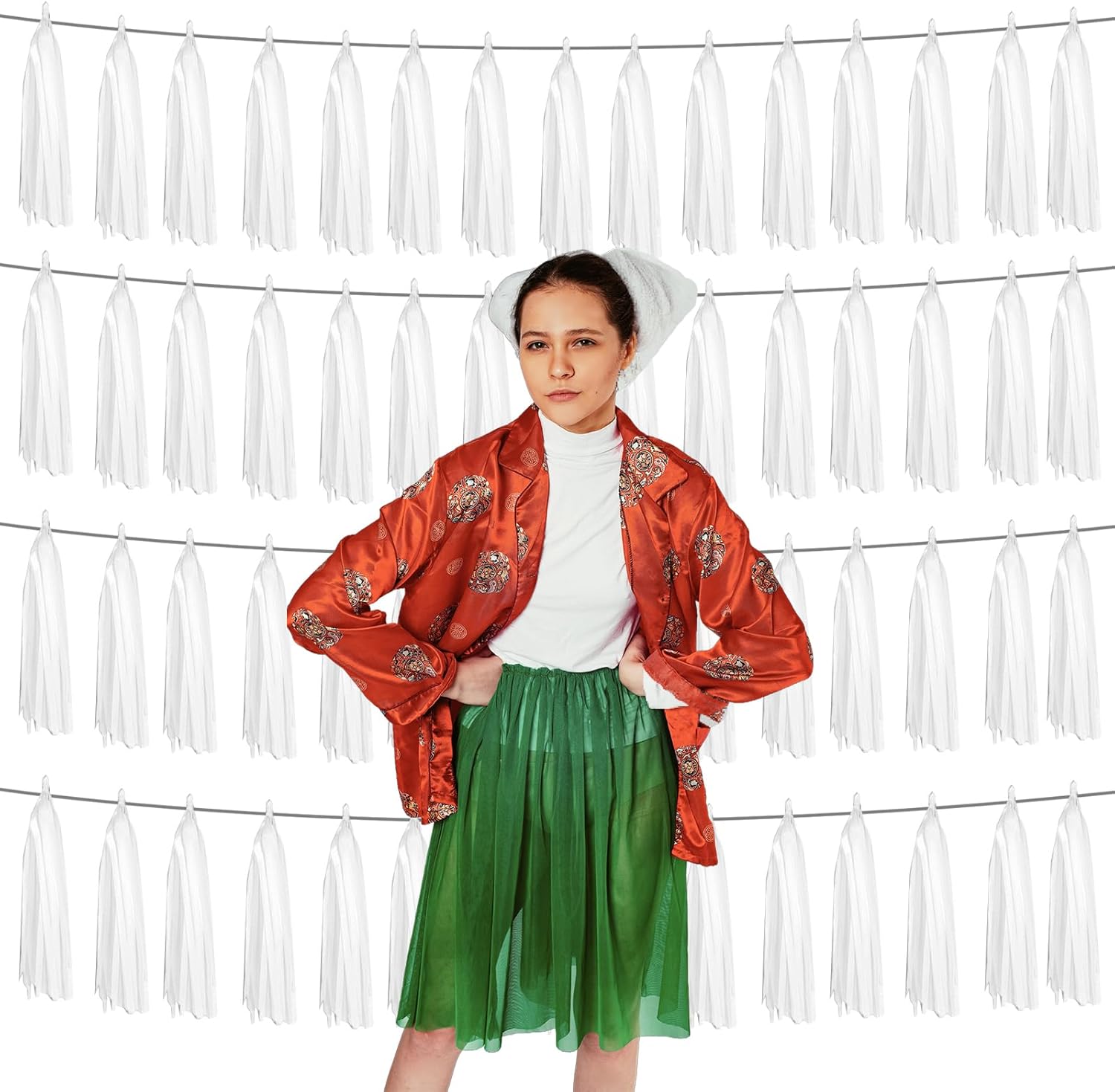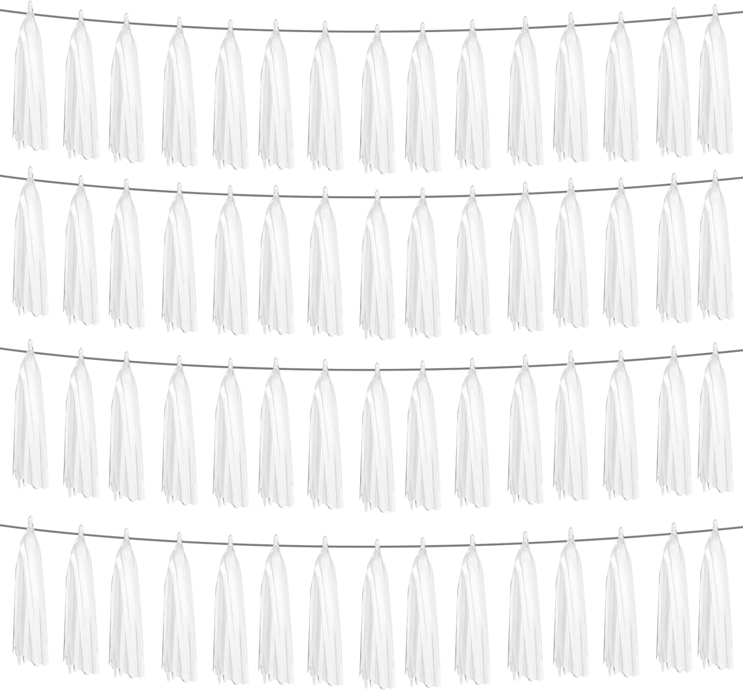 4P White Foil Fringe Metallic Tassel Streamers Banner Tassel Garland for Parade Floats, Graduation, Wedding, Birthday, Halloween, Christmas, Bridal/Baby Shower Party Decorations
