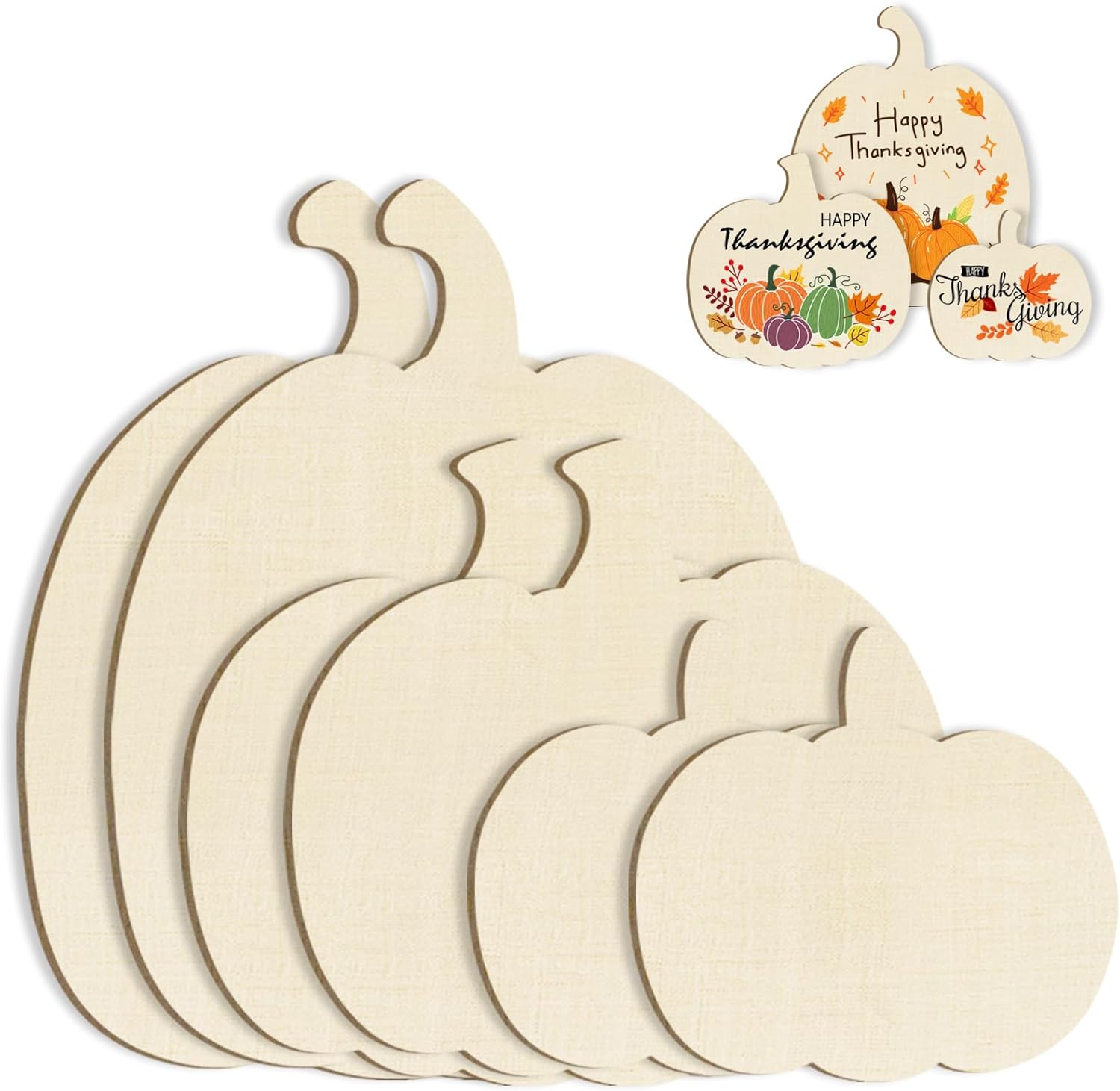 Wooden Pumpkins Ornaments to Paint Halloween Thanksgiving Decoration Cutouts Unfinished 6Pack, DIY Blank Unfinished Pumpkin Ornament for Home Harvest Crafts Autumn Decoration(3 Style)