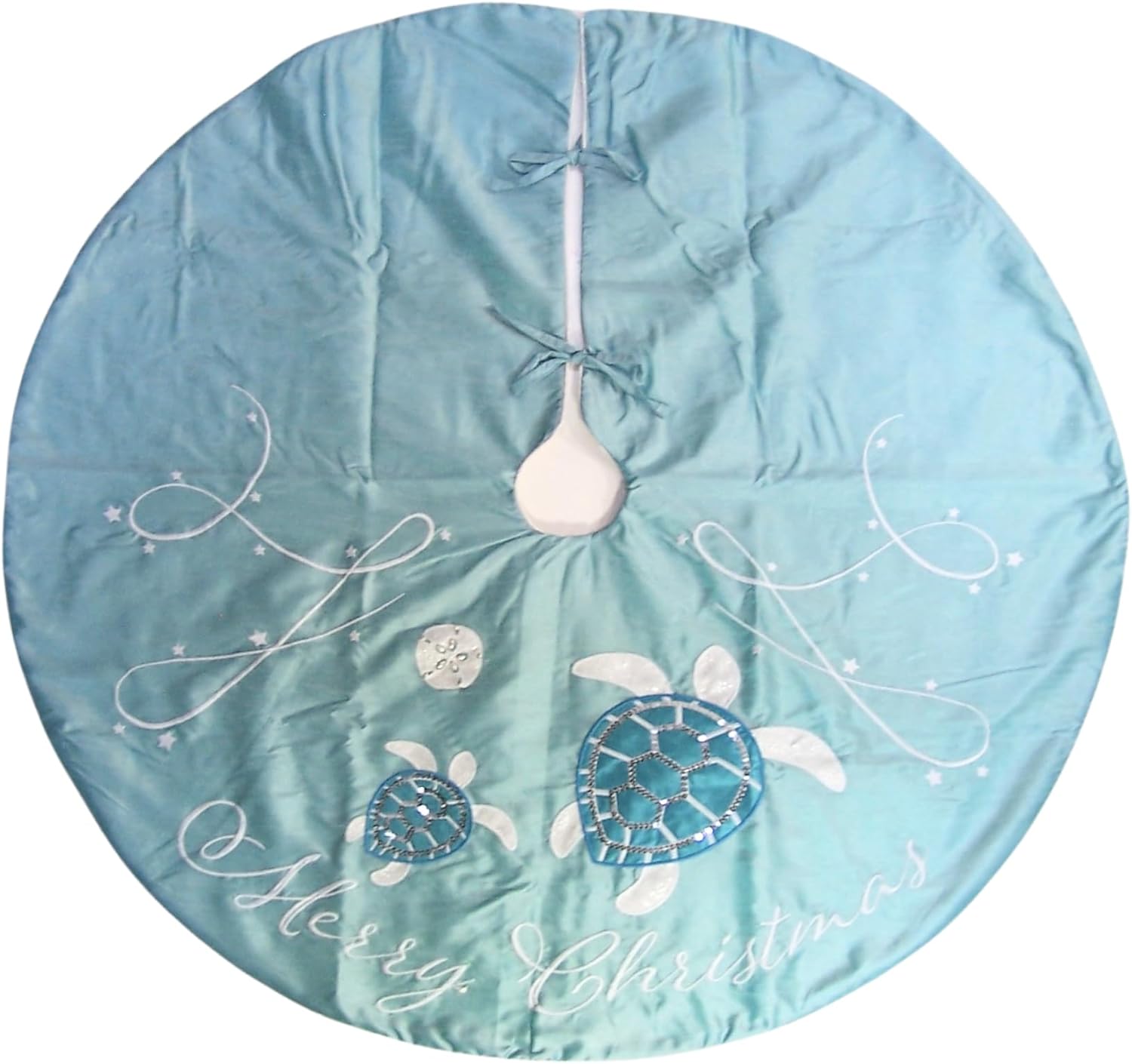 Merry Christmas Sequin Turtle Tree Skirt, 42 Inches, Turquoise and White