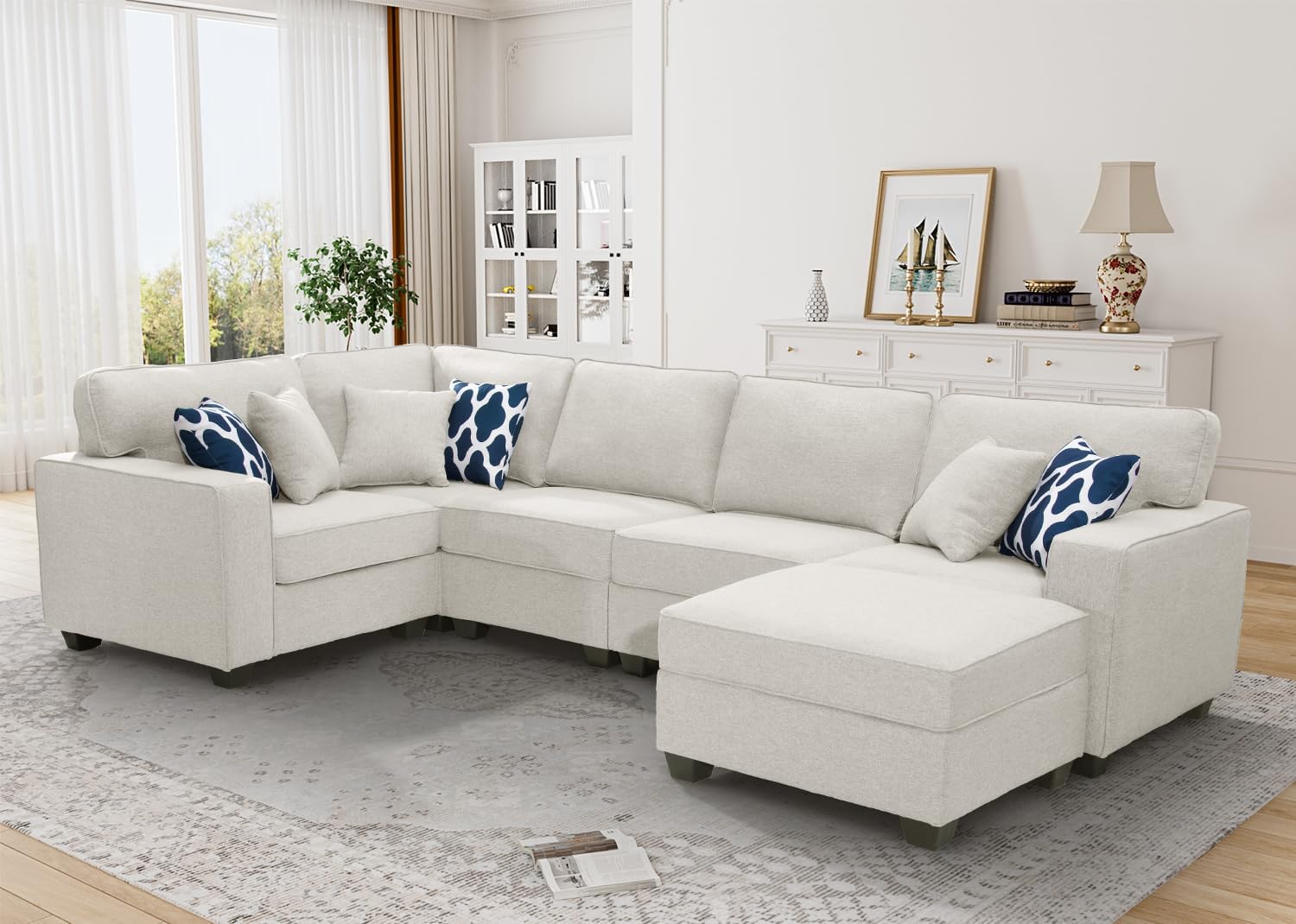 L Lengend Vansen Modular Sectional Sofa U Shaped Couch with Ottoman Modern Reversible Corner Sectional Couch for Living Room (Cream, U Shaped Sofa-1)