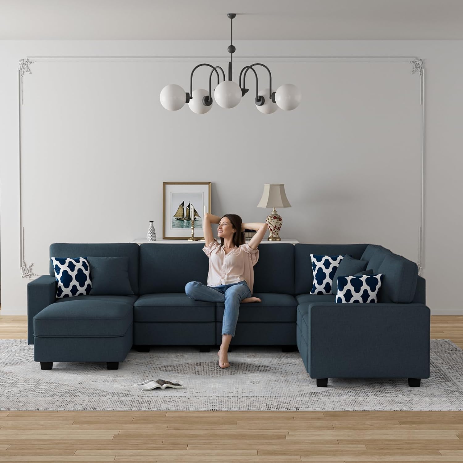 - 【Ergonomic Design】The backrest of the couches for living room perfectly fits the human body curve, the armrests are wide and at the right height, and the living room sofa as a whole is ergonomically designed to give you comfortable support. The modular sectional sofa is paired with multiple multi-functional small pillows, allowing you to relax anytime, anywhere. The oversized couch has a weight capacity of up to 660 pounds to give you stable support.
