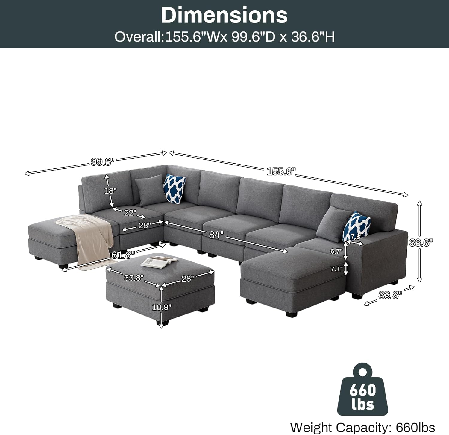 - 【Ergonomic Design】The backrest of the couches for living room perfectly fits the human body curve, the armrests are wide and at the right height, and the living room sofa as a whole is ergonomically designed to give you comfortable support. The modular sectional sofa is paired with multiple multi-functional small pillows, allowing you to relax anytime, anywhere. The oversized couch has a weight capacity of up to 660 pounds to give you stable support.