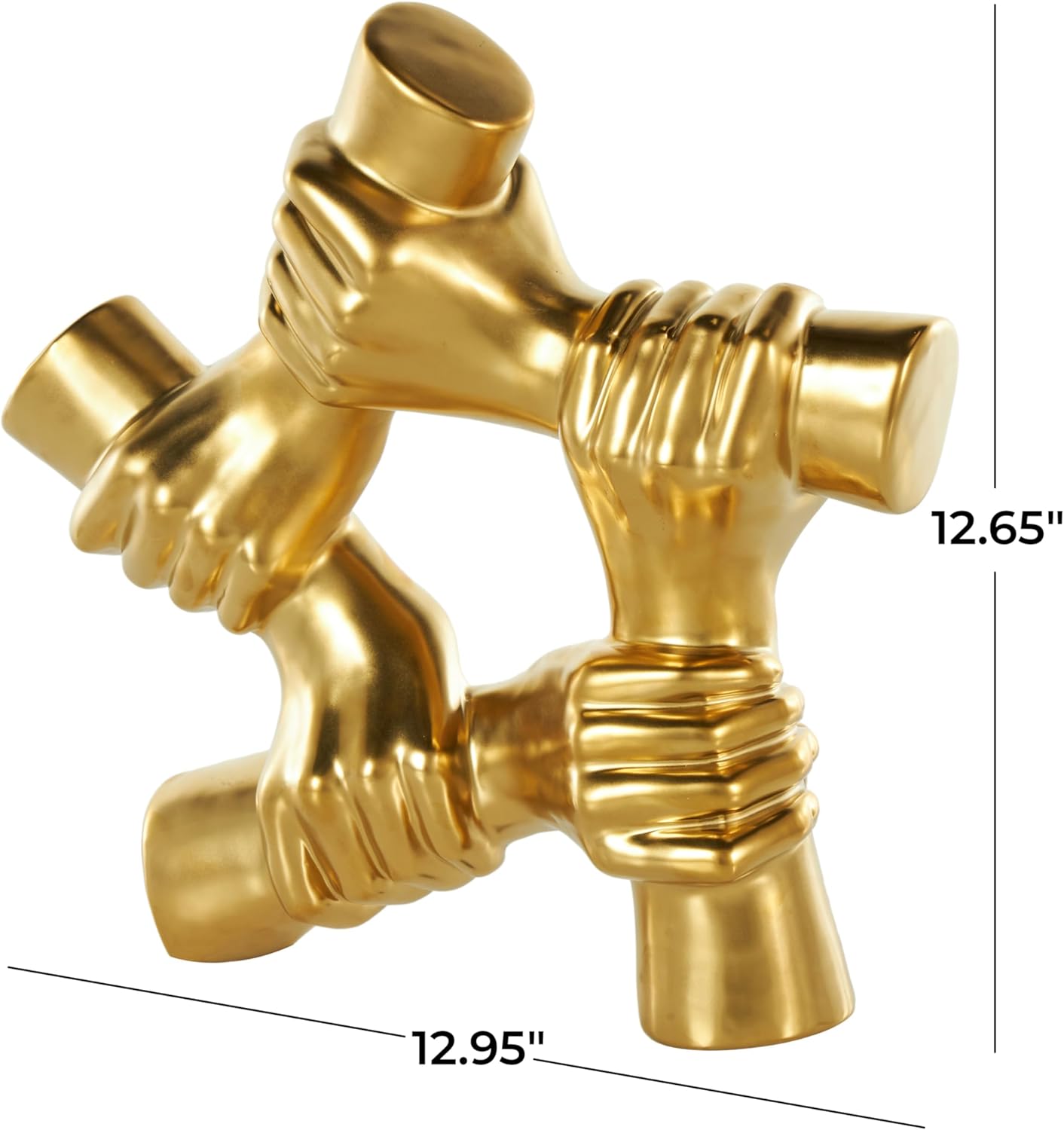 Deco 79 Ceramic Hands Decorative Sculpture Gripping Home Decor Statue, Accent Figurine 13" x 4" x 13", Gold