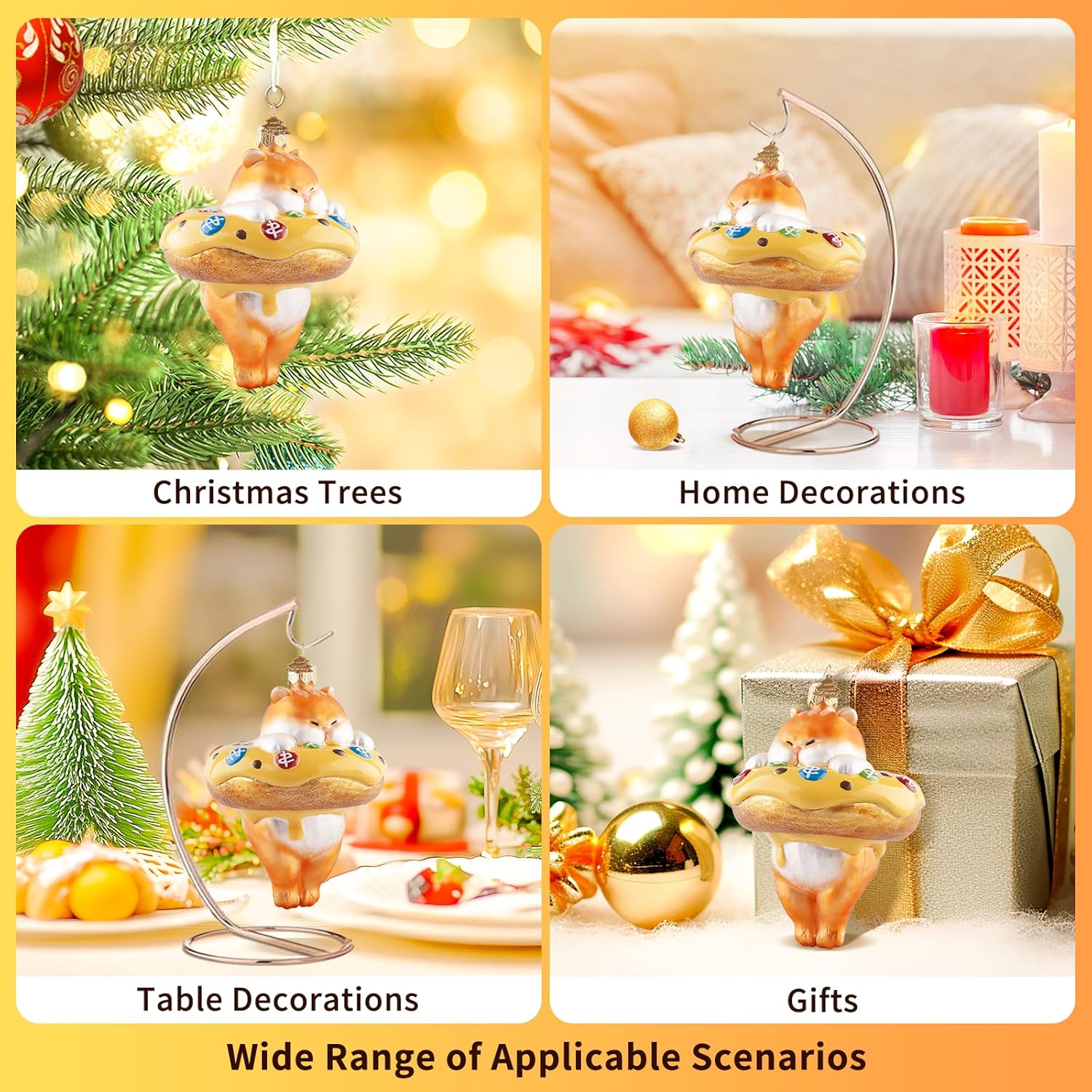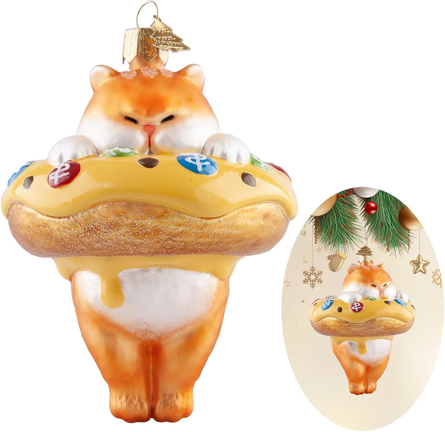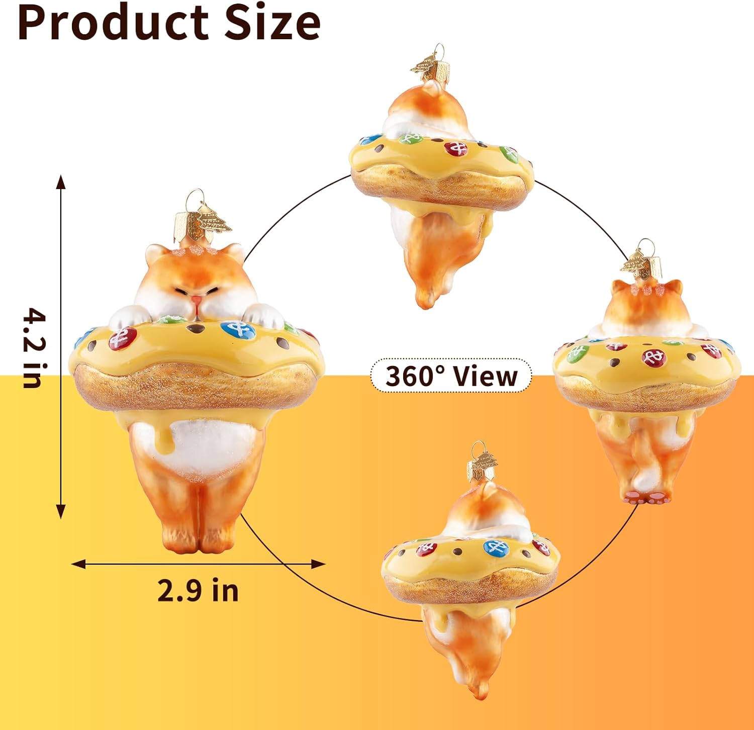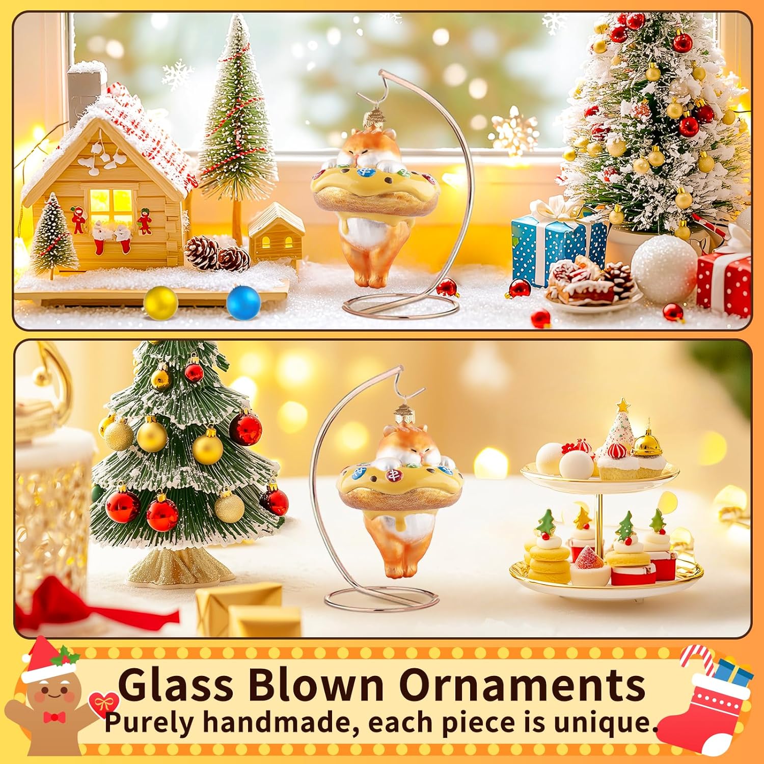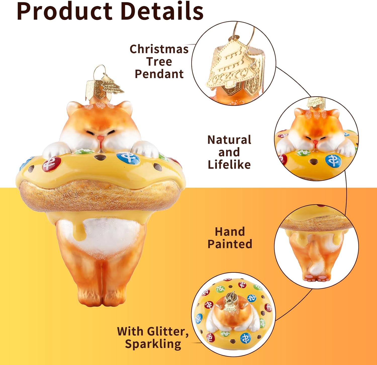 Cat Christmas Tree Ornaments,Hand-Blown Glass Ornaments,Cat Collection Hanging Ornaments,Donut Pendant Ornament,Glass Christmas Decorations for Animal Lovers Holiday Party Home Gifts