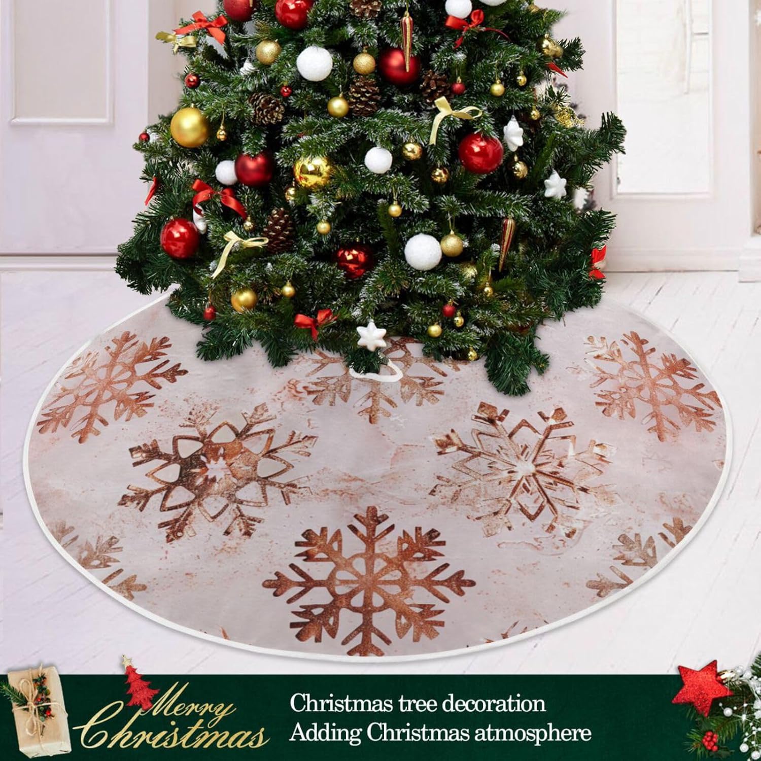 Christmas Tree Skirt, 48 Inch Rose Gold Snowflakes Pattern Xmas Tree Skirt for Christmas New Year Party Decorations Christmas Tree Mat