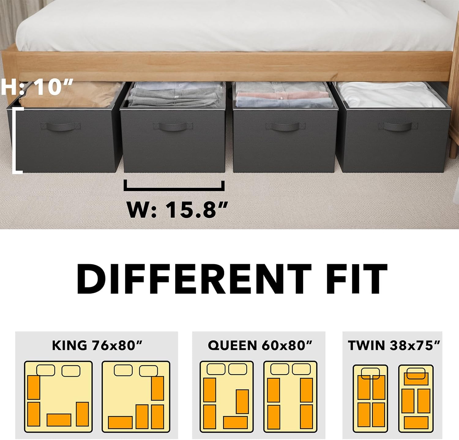 - 4 PACK BLACK UNDER BED STORAGE - Make your underbed space neat and organized with this storage bin organizer; Each Bin SIZE: 31.5"L x 15.8"W x 10"H