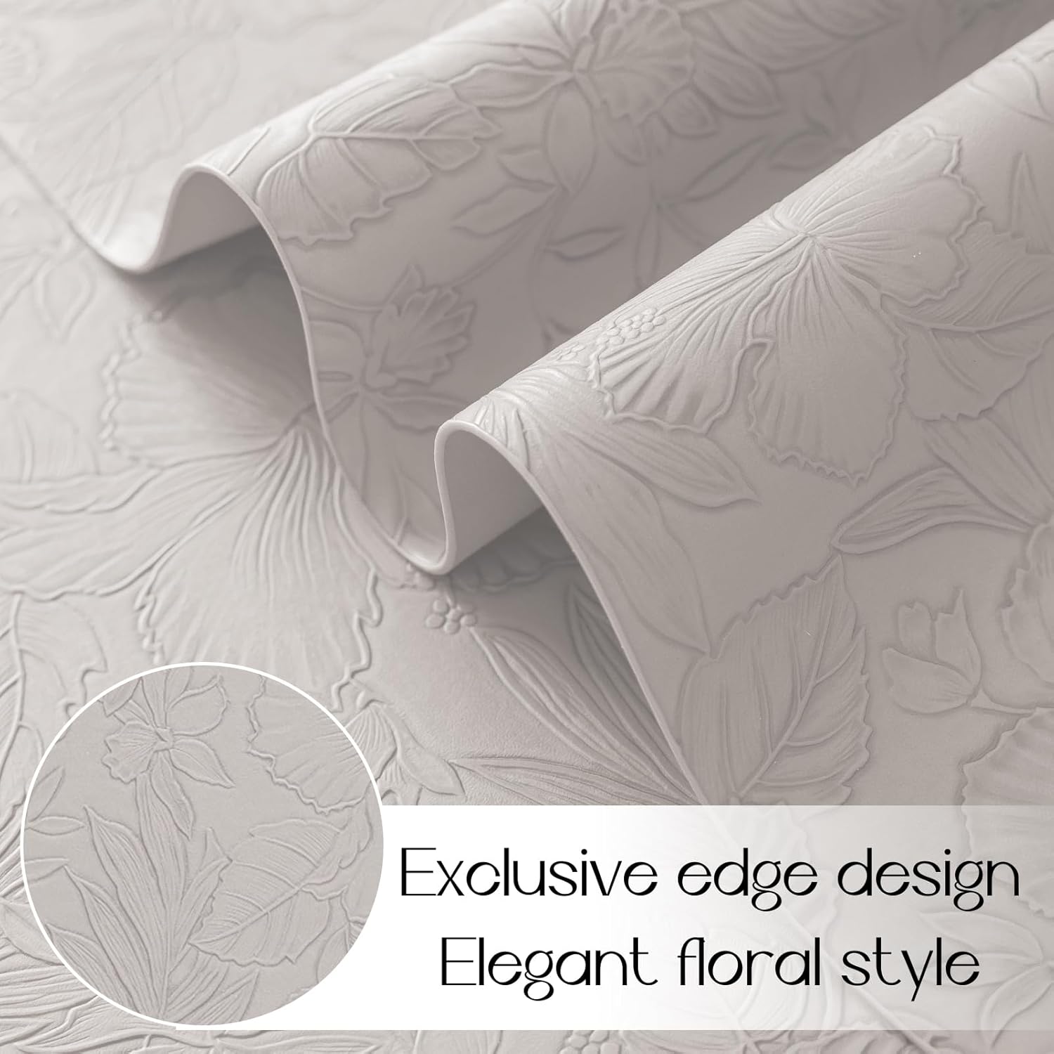 Romanstile Vinyl Placemats Set of 8-12 X 18 Inch - Heat Resistant Non-Slip Embossed Floral Place Mats 100% Waterproof Oilproof Wipeable Faux Leather Table Mats for Kitchen/Dining/Party, LightGrey