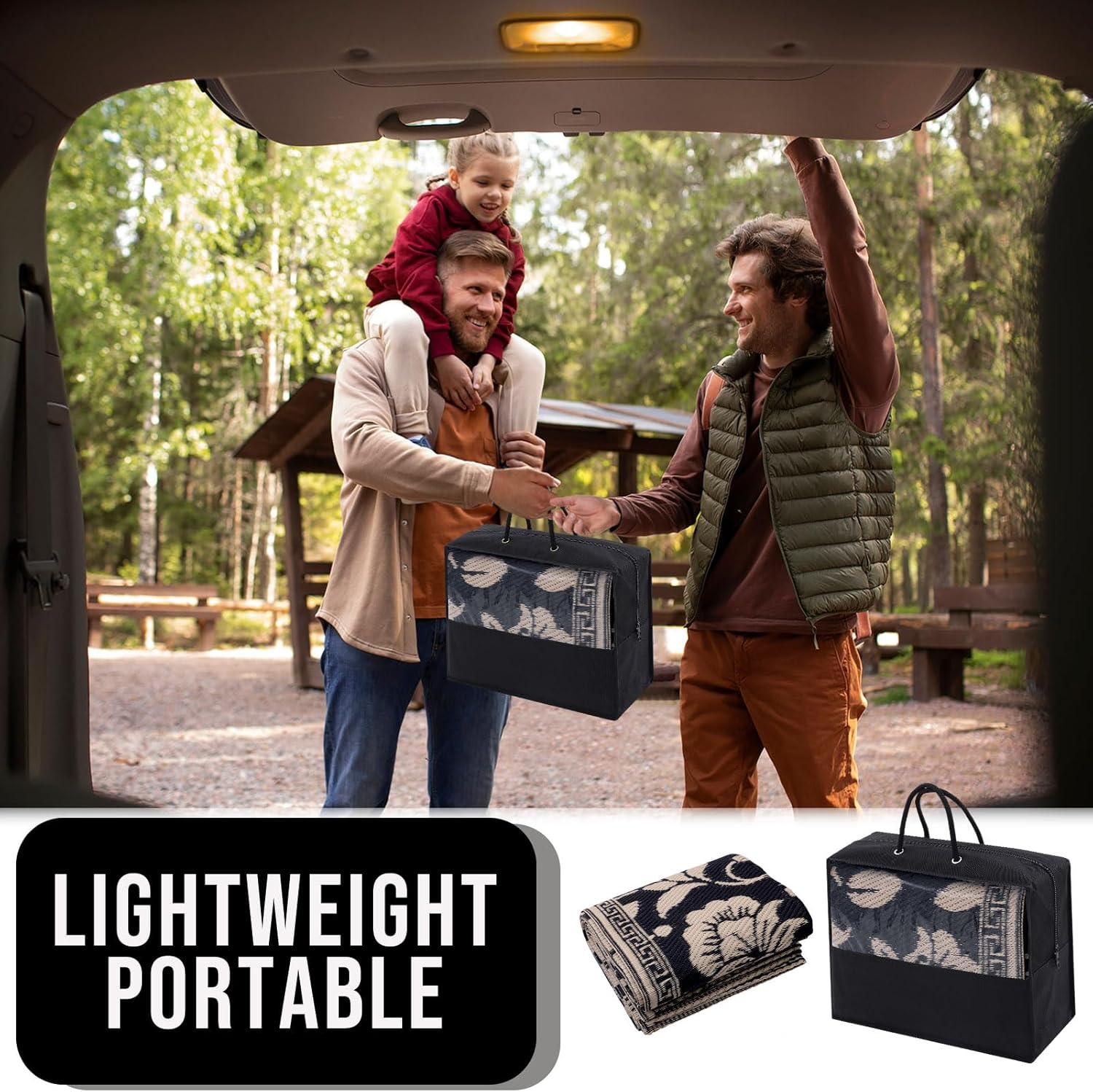 - Lightweight & Portable: Our RV rug is lightweight and easy to transport, making it perfect for any outdoor adventure. It comes complete with a convenient carrying case, allowing you to seamlessly enjoy style and comfort wherever you go.