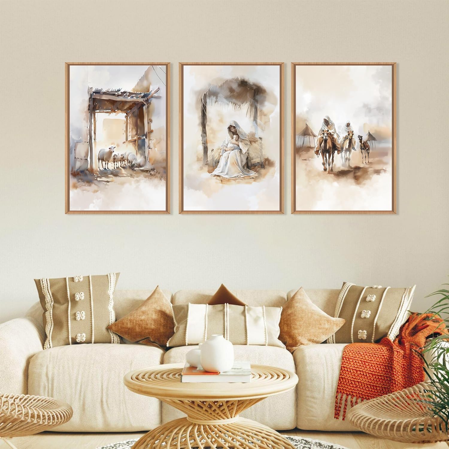 - 【Jesus Christian Catholic Wall Art】 The Size of the Christian framed canvas wall art set is:24x36 inchx3pcs (60x90cmx3pcs). Vintage Jesus Poster Prints artwork use high-quality environmentally friendly ink and high-quality canvas, and use the industry's top printers for layered spraying, the colors are delicate and the transition is natural.bring you visual enjoyment.