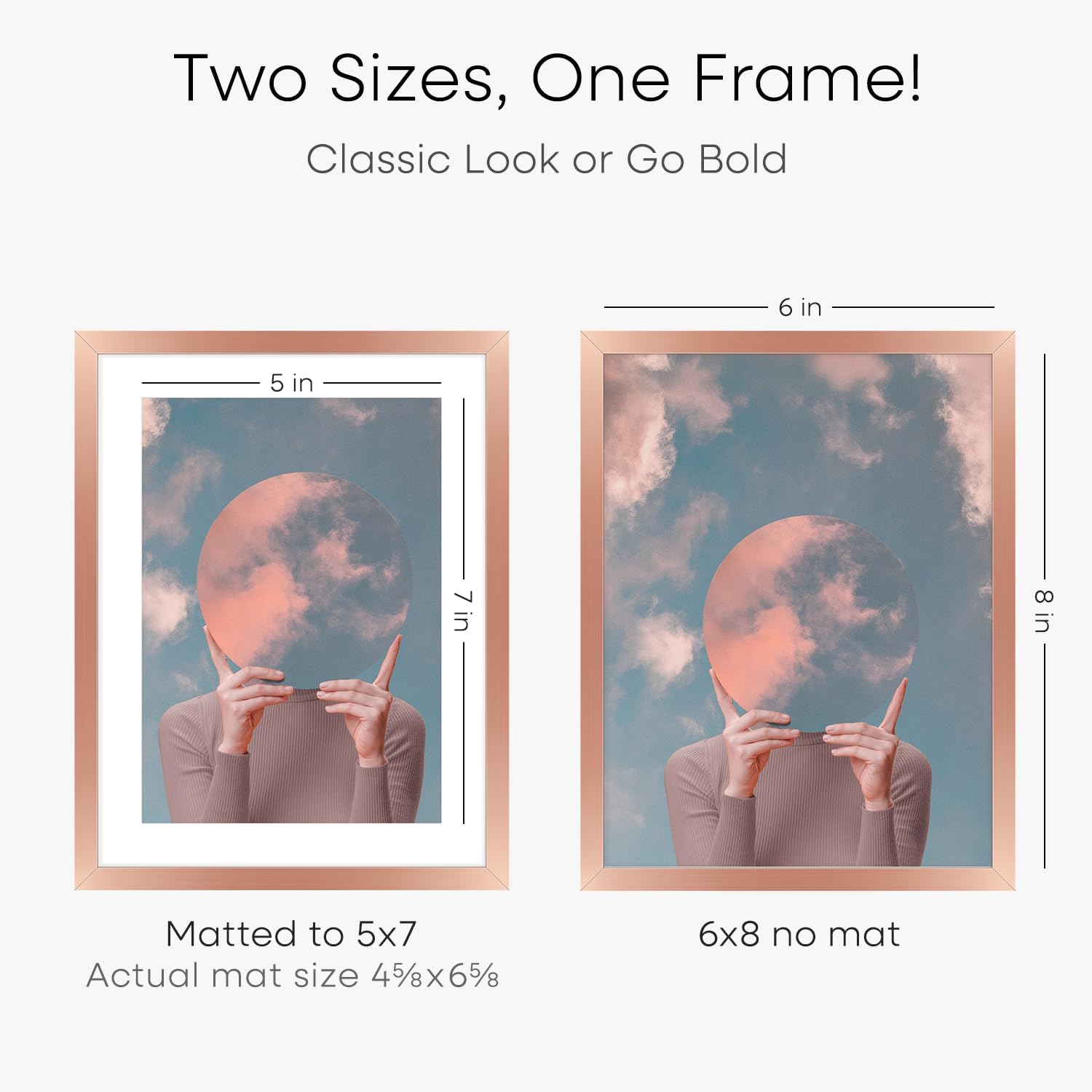 Homeforia Rose Gold 6x8 Picture Frame, High End Metal 6 x 8 Frames with Mat 5 x 7 for Print, 6by8 Desk Frame Matted to 5x7 inch Photo, 6 by 8 Wall or Tabletop Frame, Tempered Glass, Wall Kit, Set of 1