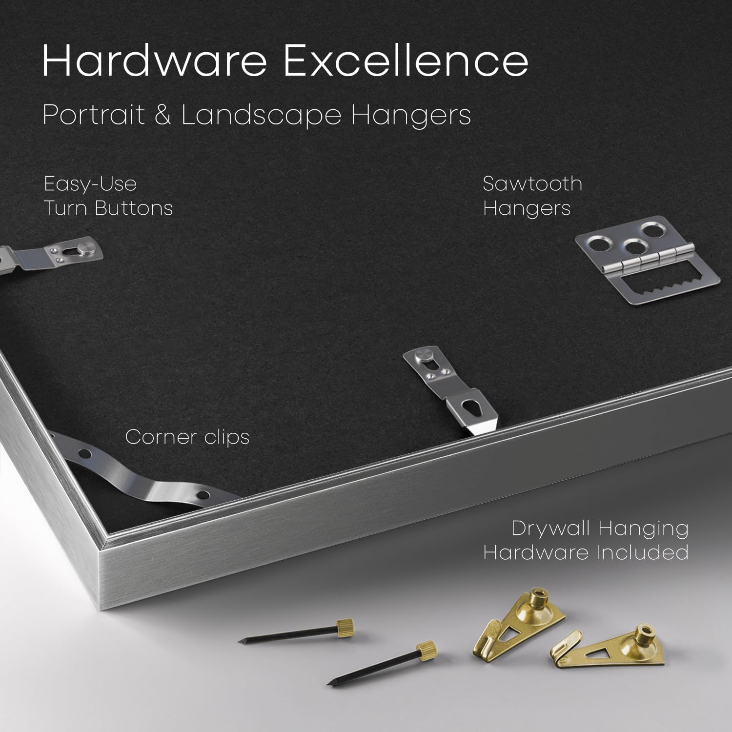 Homeforia Silver 27x40 Poster Frame, Metal Picture Frame with 24x36 Mat, Tempered Glass, Wall Hook Included, Set of 1