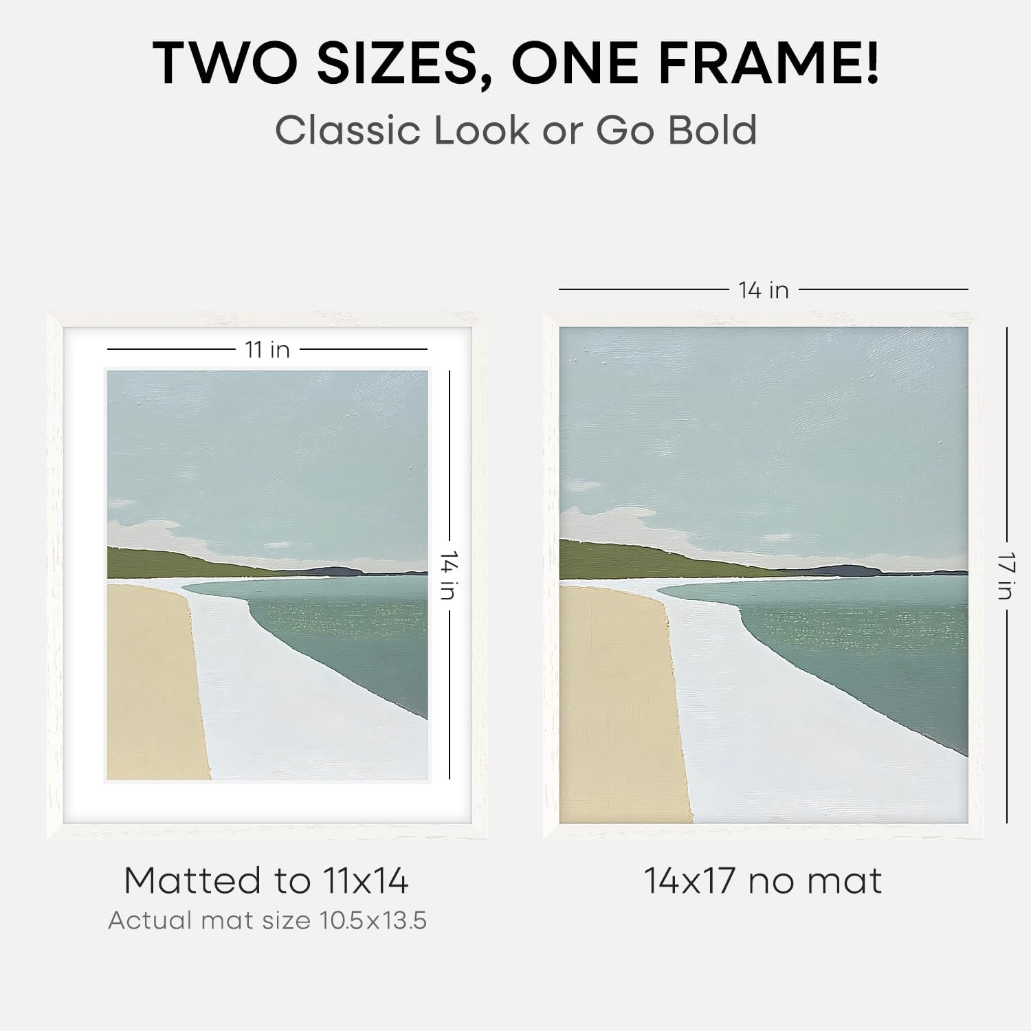 Homeforia 14x17 Picture Frame White, High End Oak 14x17 White Wood Frame with Mat 11x14 Photo, 14 x 17 Wooden Poster Frames Matted to 11 by 14, 17x14 Hanging Frames, Tempered Glass, Wall Kit, Set of 1