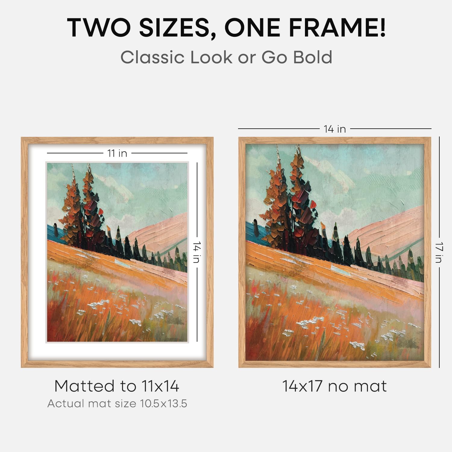 Homeforia 14x17 Natural Oak Wood Picture Frame with 11x14 Mat, Tempered Glass, Wall Hook Included