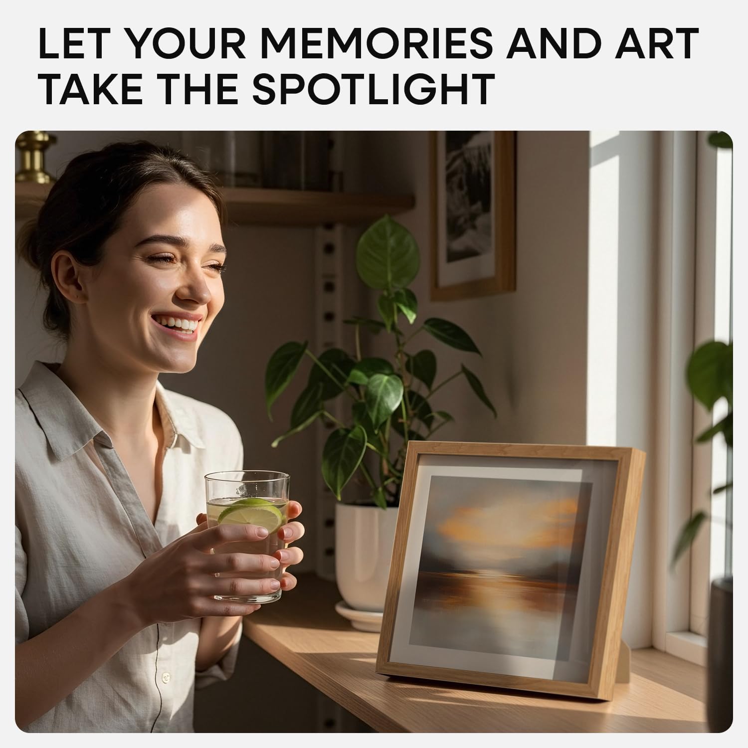 - LUXURY TEXTURE, NEVER LAMINATE Crafted from real oak with subtle grain and a matte finish, this frame delivers an upscale gallery look—not a mass-produced feel.