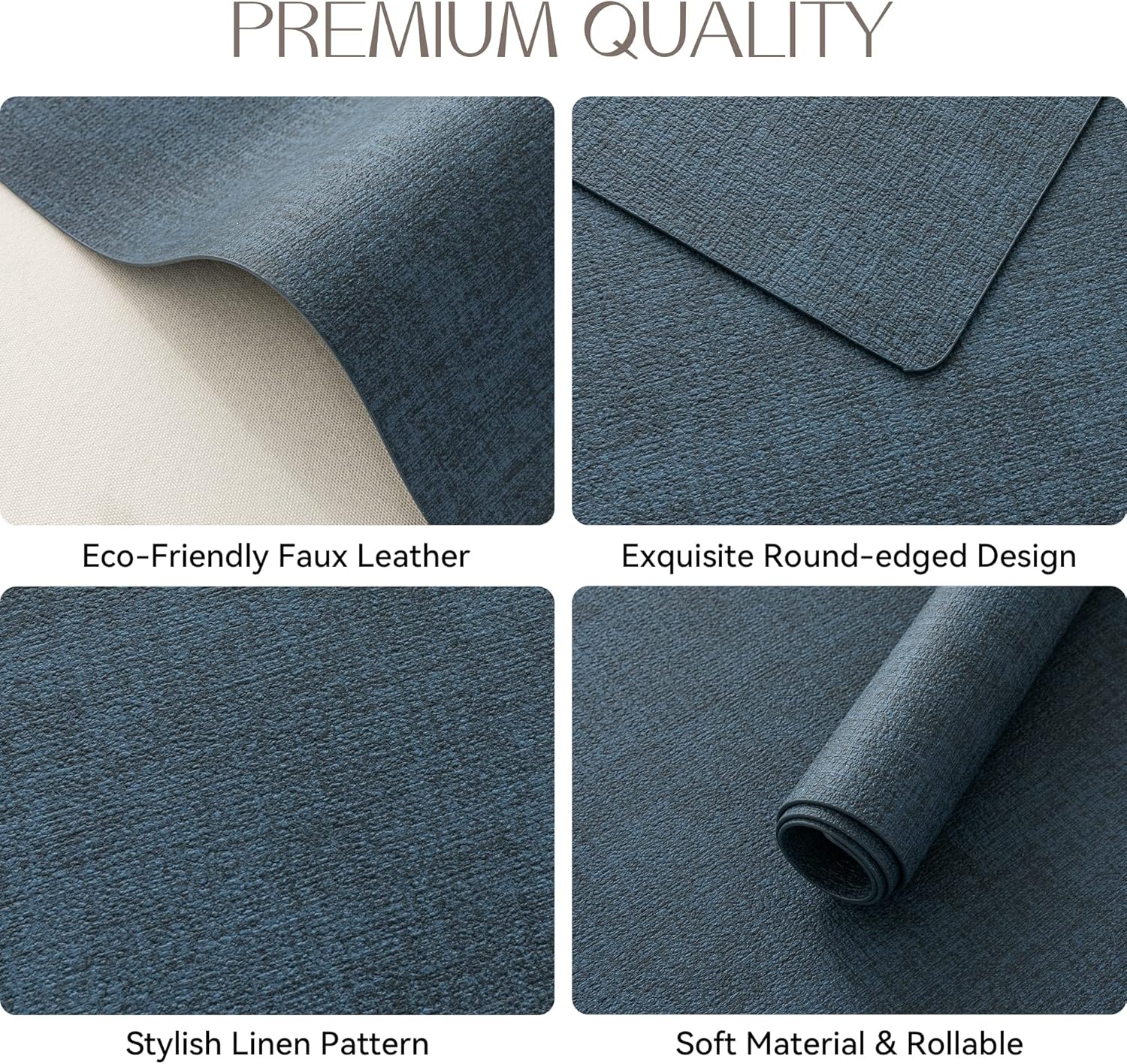 Romanstile Vinyl Placemats Set of 12-12 X 18 Inch - Heat Resistant Place Mats 100% Waterproof Oilproof Wipeable Reversible Faux Leather Table Mats for Kitchen/Dining/Party/Outdoor, Navy Blue