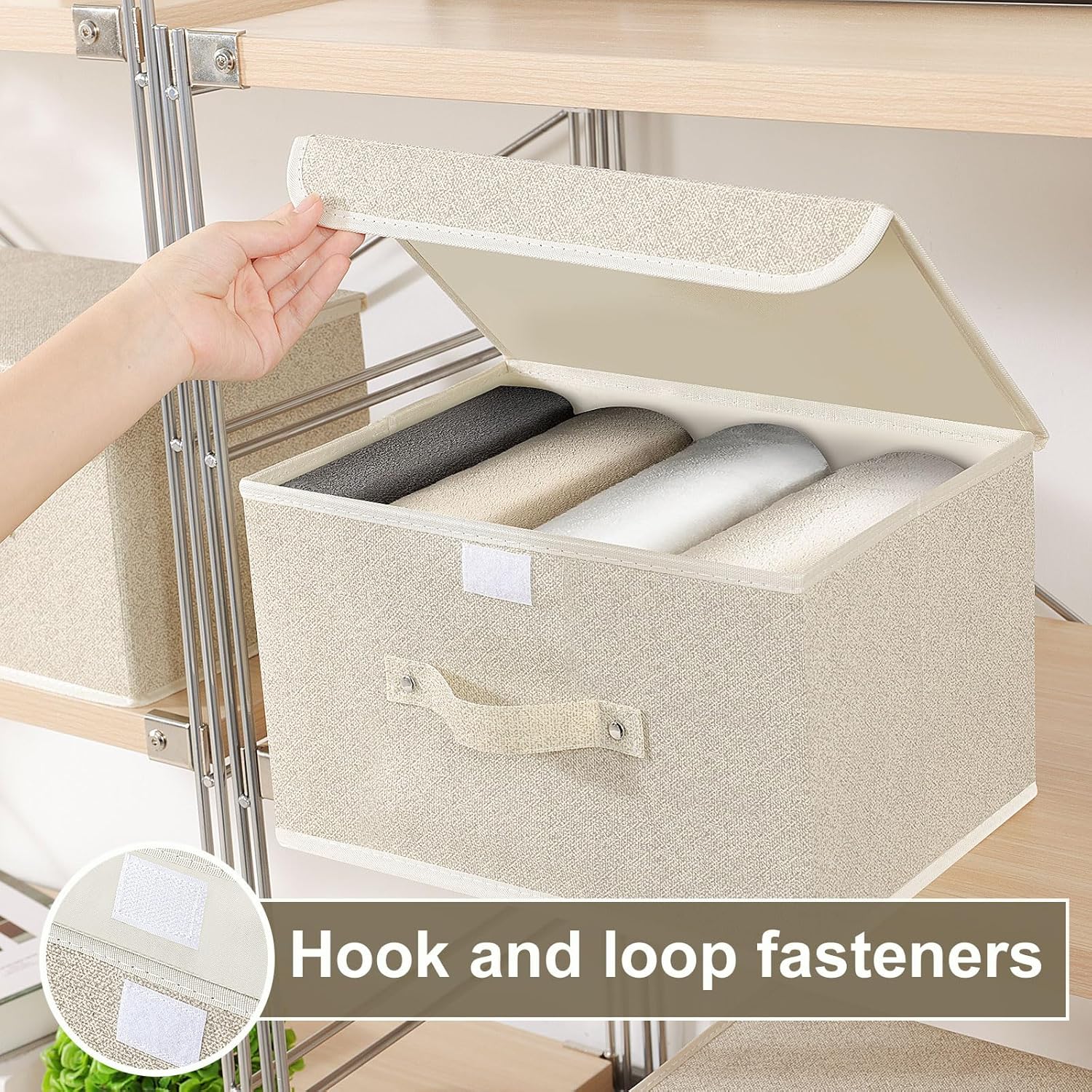 - Flip Storage Bins:13.0x 9.1 x 7.9 inches,the cloth storage bin can store more items,just one cloth storage box can contain 1 blanket or 4 clothes or 8 T-shirts or 6 towels, convenient and practical