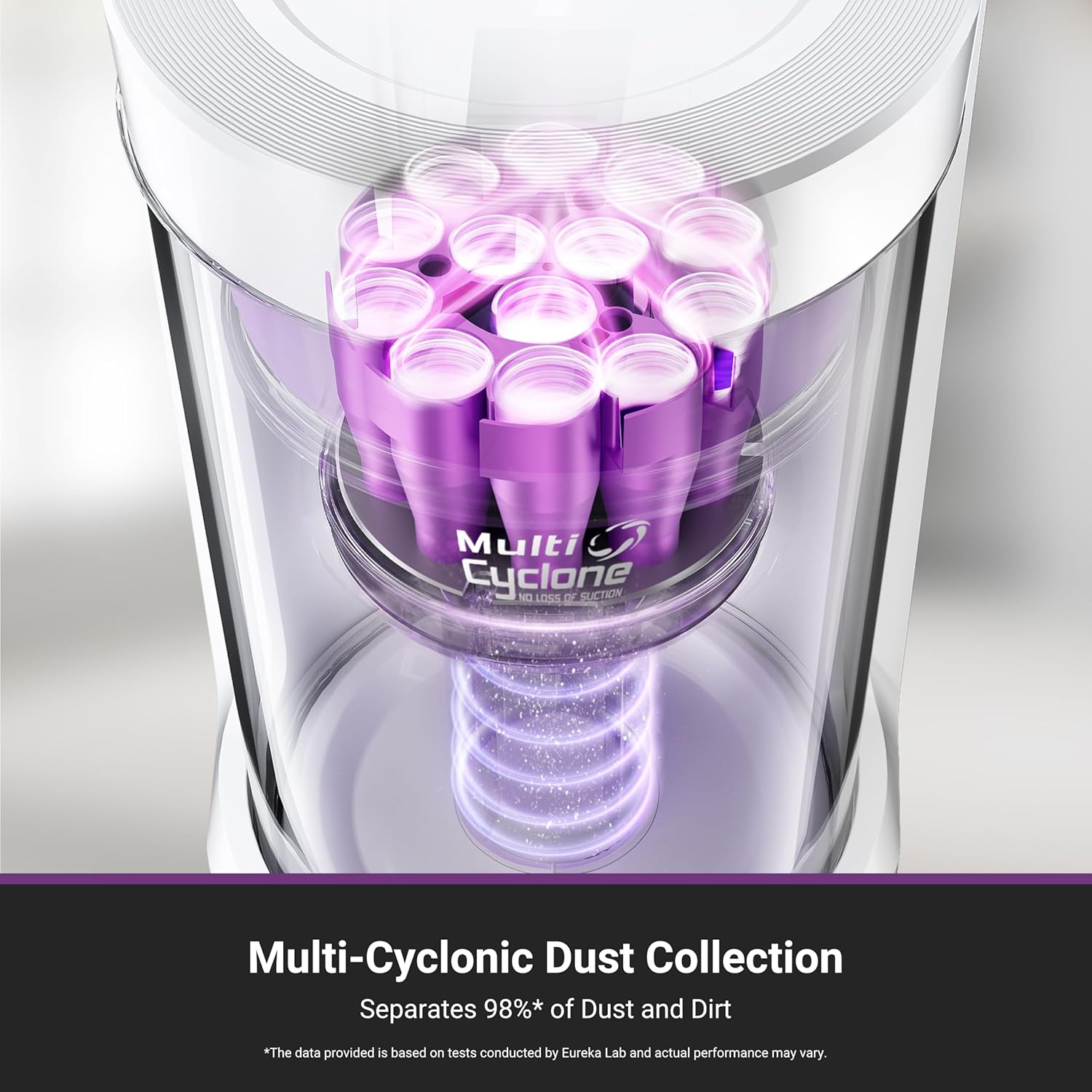 - 【Multi-Cyclonic Dust Collection】Eureka E20 Plus self-emptying robot vacuum cleaner comes equipped with a 13-cone structure, multi-cyclonic separation technology combines with powerful centrifugal force, generated by the suction during dust collection, to separate 98%* of dust and dirt before they reach the filter.