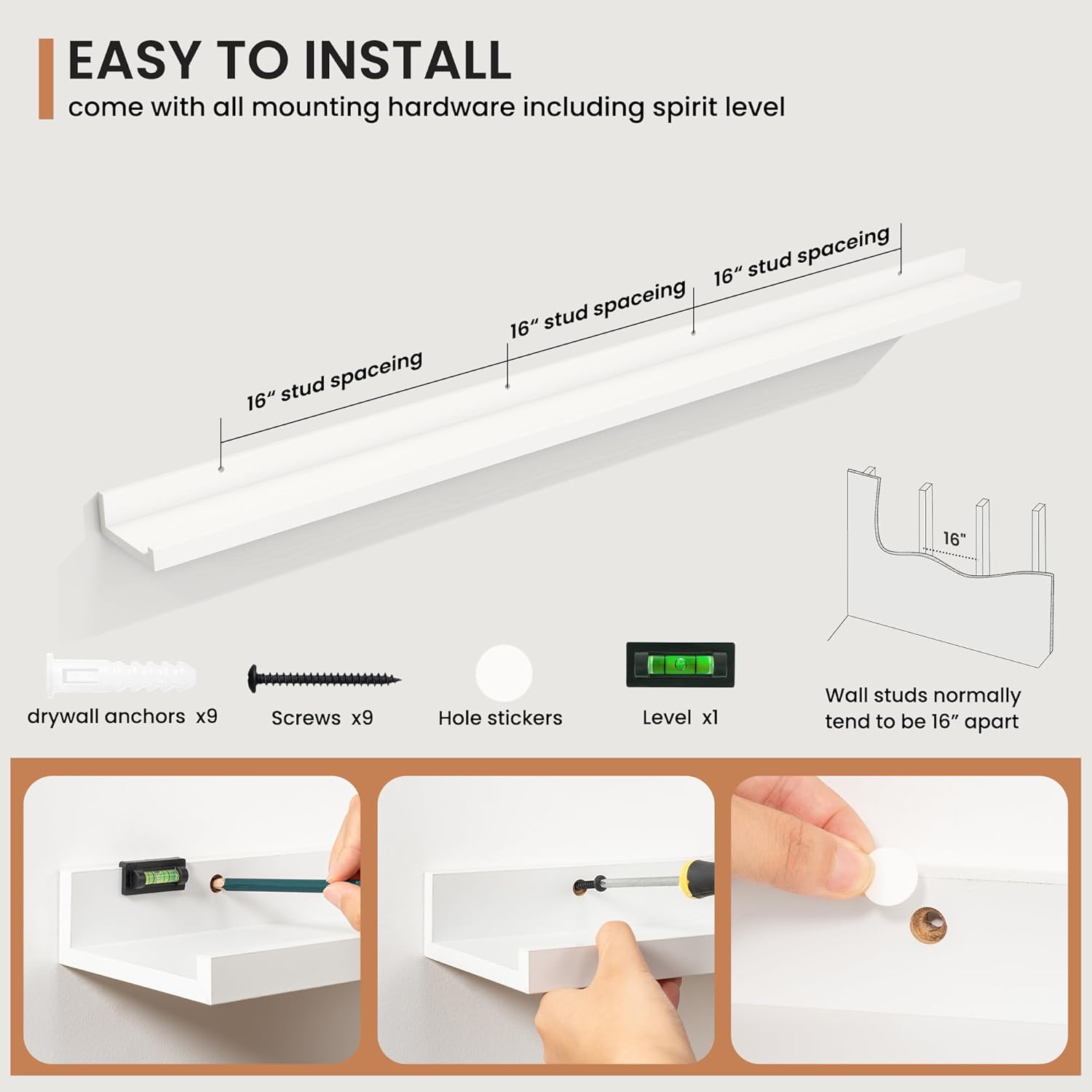 - Effortless Installation: Each shelf comes with pre-drilled holes and all necessary hardware, making installation quick and easy, so you can enjoy your new decor in no time.