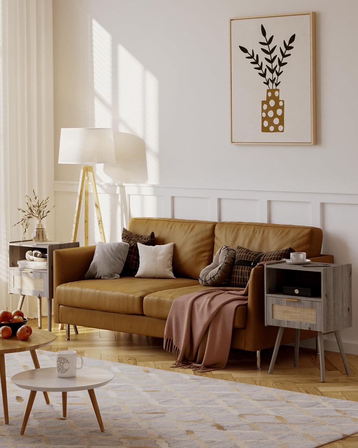 - Embrace an Modern Vibe:Grey Oak with rattan face,this nightstand emits an farmhouse vibe in your bedroom. It can also catch eyes as a side table or end table throughout the home,adding elegance to home life.