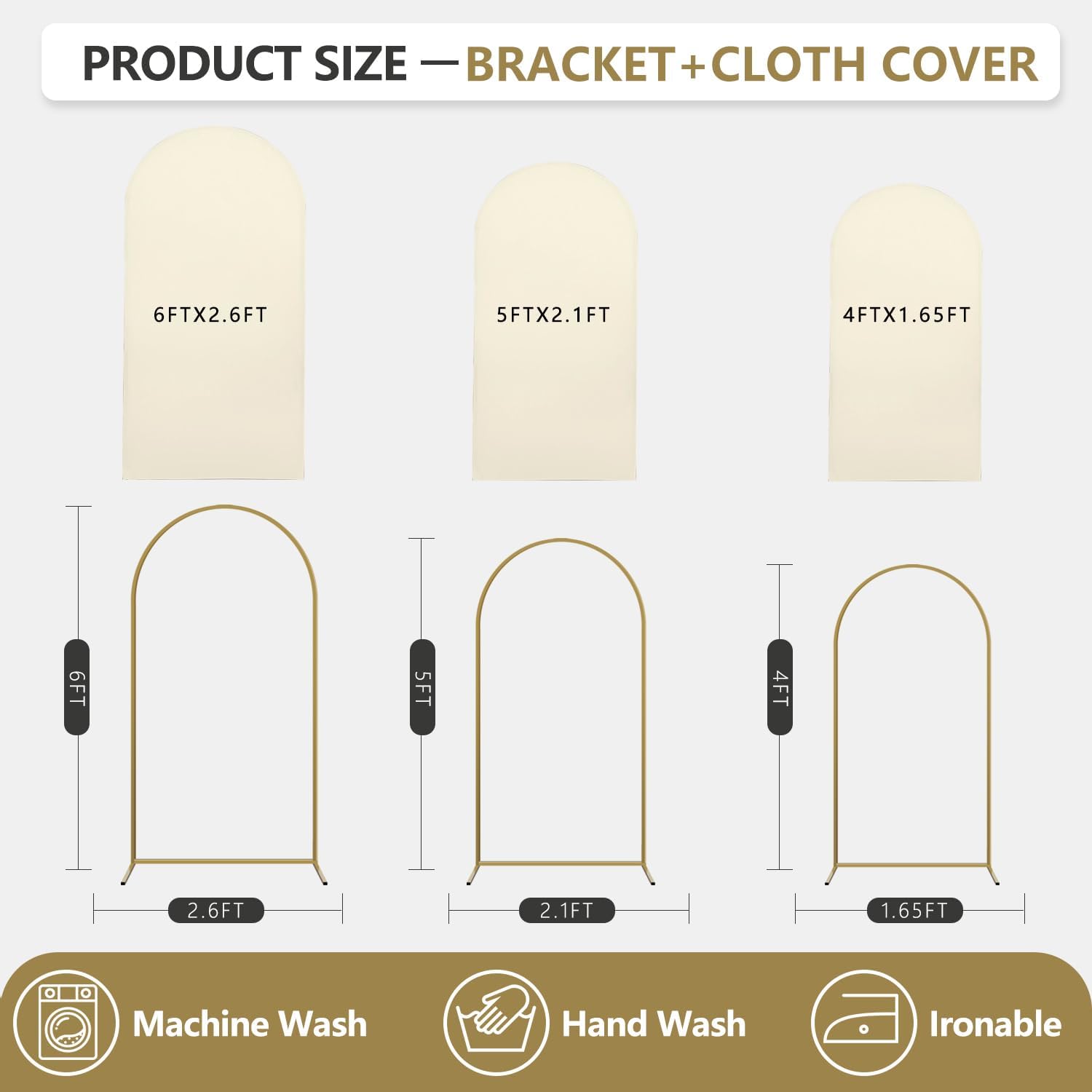 Arch Backdrop Stand and Cover Set, 3 Metal Balloon Arch Backdrop 4ft 5ft 6ft, Gold Arched Stand Frame for Wedding, Parties,Birthday, Backdrop Decorations (Beige,4ft+5ft+6ft)