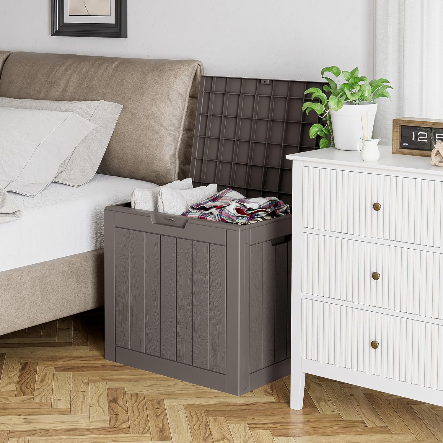- EXTRA TABLE OR SEAT - This multifunctional deck box not only offers convenient storage but also serves as a comfortable single chair or table. With a maximum weight capacity of 265 pounds, it can easily accommodate adults, providing versatility and functionality.