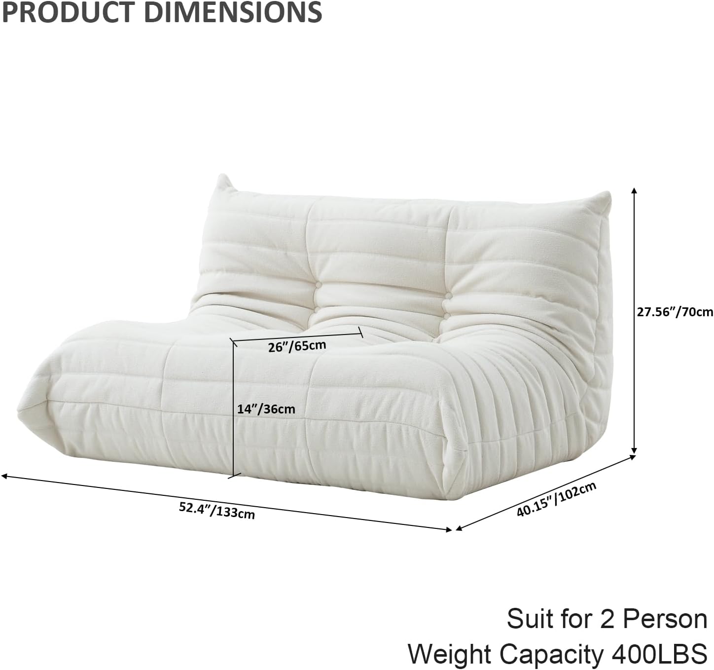 Luxury Sofa Couch Chair, Lazy Floor Seating, Fireside Bean Bag Chair, Ergonomic Tatami Sofa Lounger for Living Room, Bedroom, Office, Loveseat, White