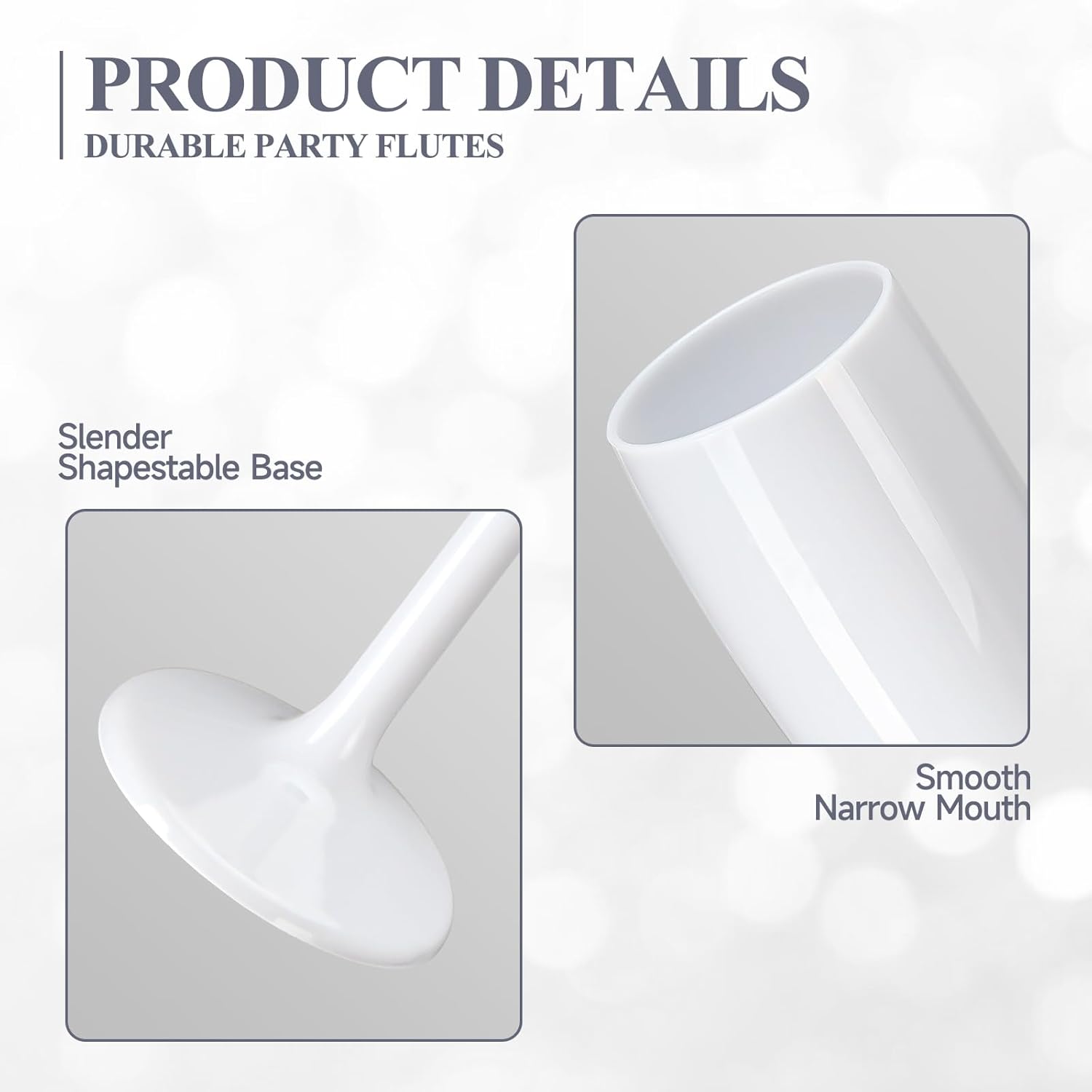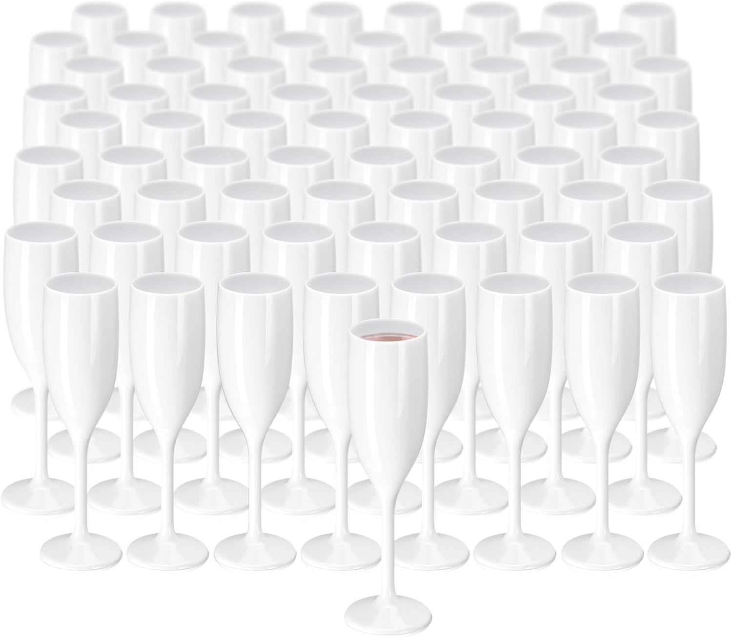 XUWAIDSGN Acrylic Champagne Flutes Toasting Glasses Unbreakable Mimosa Bar Reusable Wine Glasses Vintage Champagne Flutes Stemmed Drinking Cups 5.4 OZ for Christmas Birthday (100, white)