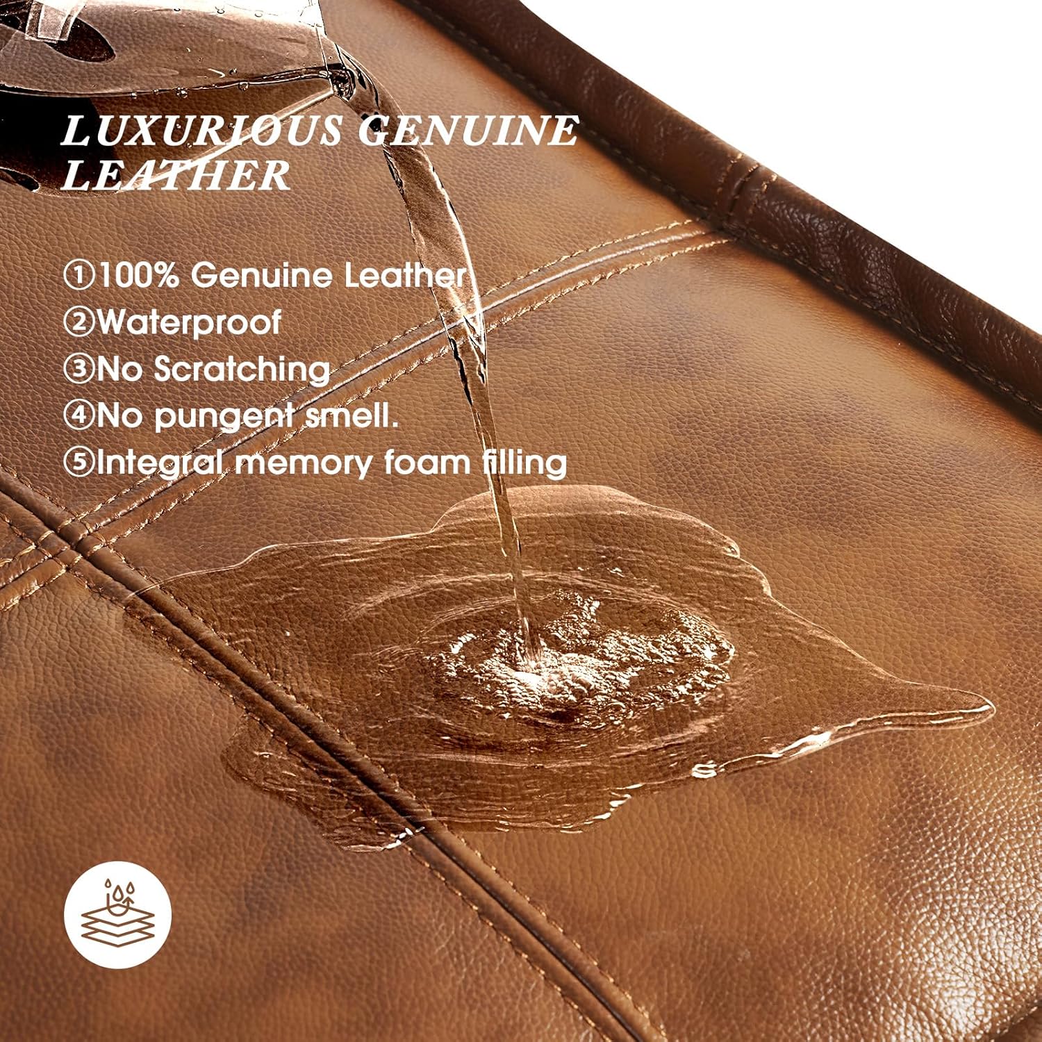 Leather Ottoman,Handmade Stuffed Square Ottoman,Genuine Leather Pouf, Foot Rest Pouf,Comfortable Soft Seating for Living Room & Bedroom (Brown, Square)