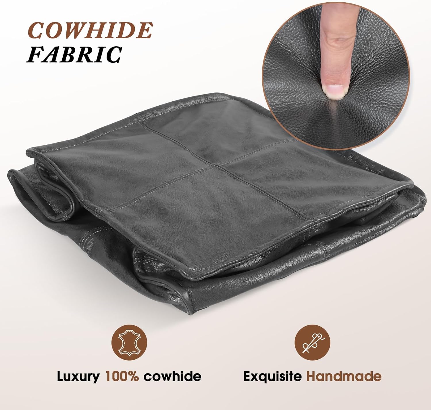 Leather Ottoman,Handmade Stuffed Square Ottoman,Genuine Leather Pouf, Foot Rest Pouf,Comfortable Soft Seating for Living Room & Bedroom (Grey, Square)