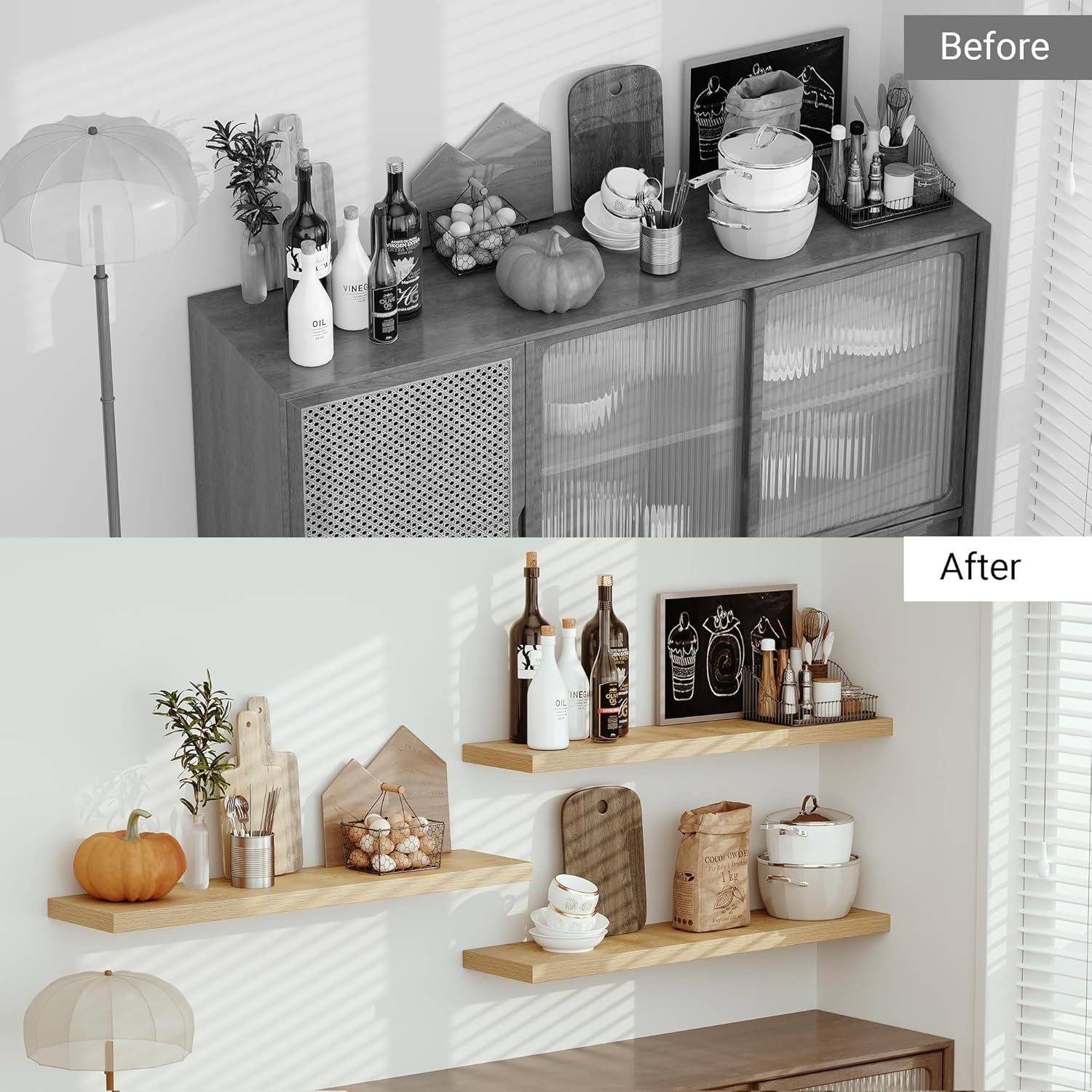 - Versatile & Functional - Our Decorative shelf for wall Adds character to any modern, traditional, rustic, or farmhouse decor home & kitchen styles.These shelves for wall decor above a small desk in your guest room, desks, fireplaces, over toilet storage shelf,living room wall decor, corner bookshelf, bathroom decor, office wall decor,or vanities and so on. If you are seeking easy-to-install, stylish floating shelves to add a contemporary touch to your home, these shelves are an excellent choice.