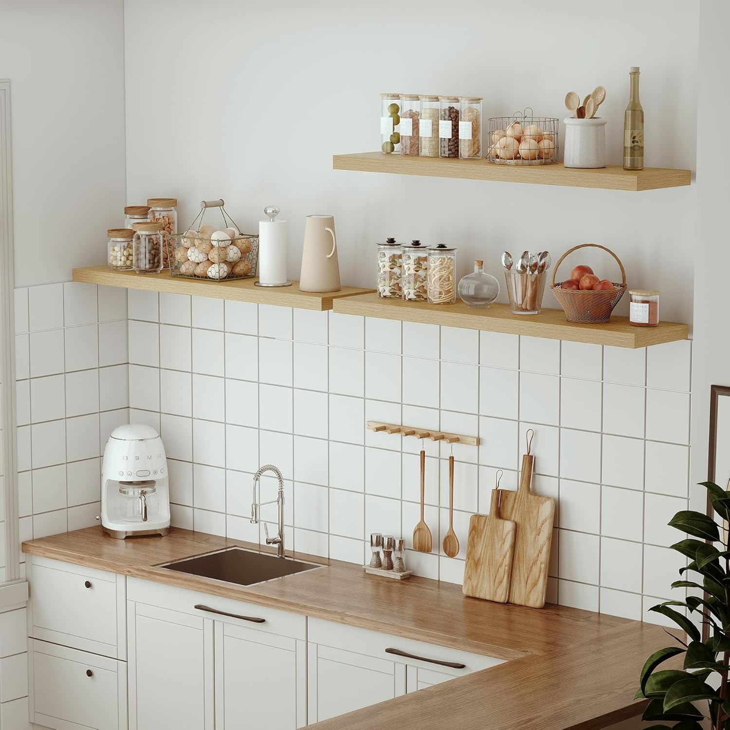 - Well-designed Floating Shelves - The rustic style floating shelves combining both practicality and style. These shelves offer a generous deeper and thicker surface, perfect for organizing daily sundries without taking up valuable floor space. The various of selected colours finish adds a cozy, natural element,display your art pieces on the wall to decorate your home, and make it full of aesthetic flare.