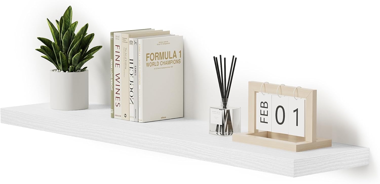 Single Floating Shelves 48 Inches, 48 x 10 inch Deep x 1.8 in Thick, Long Wall Shelves Heavy Duty 80 lbs for Bedroom, Living Room, Kitchen, Office, Modern Shelf Book Home Decor, White