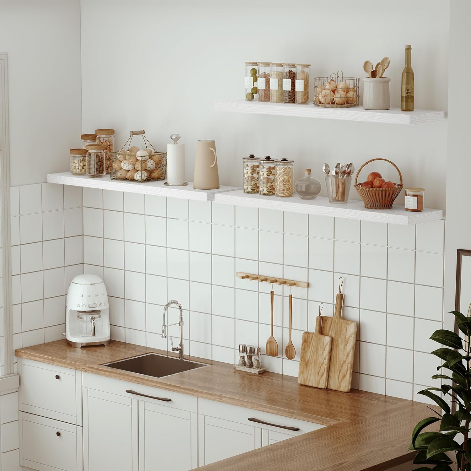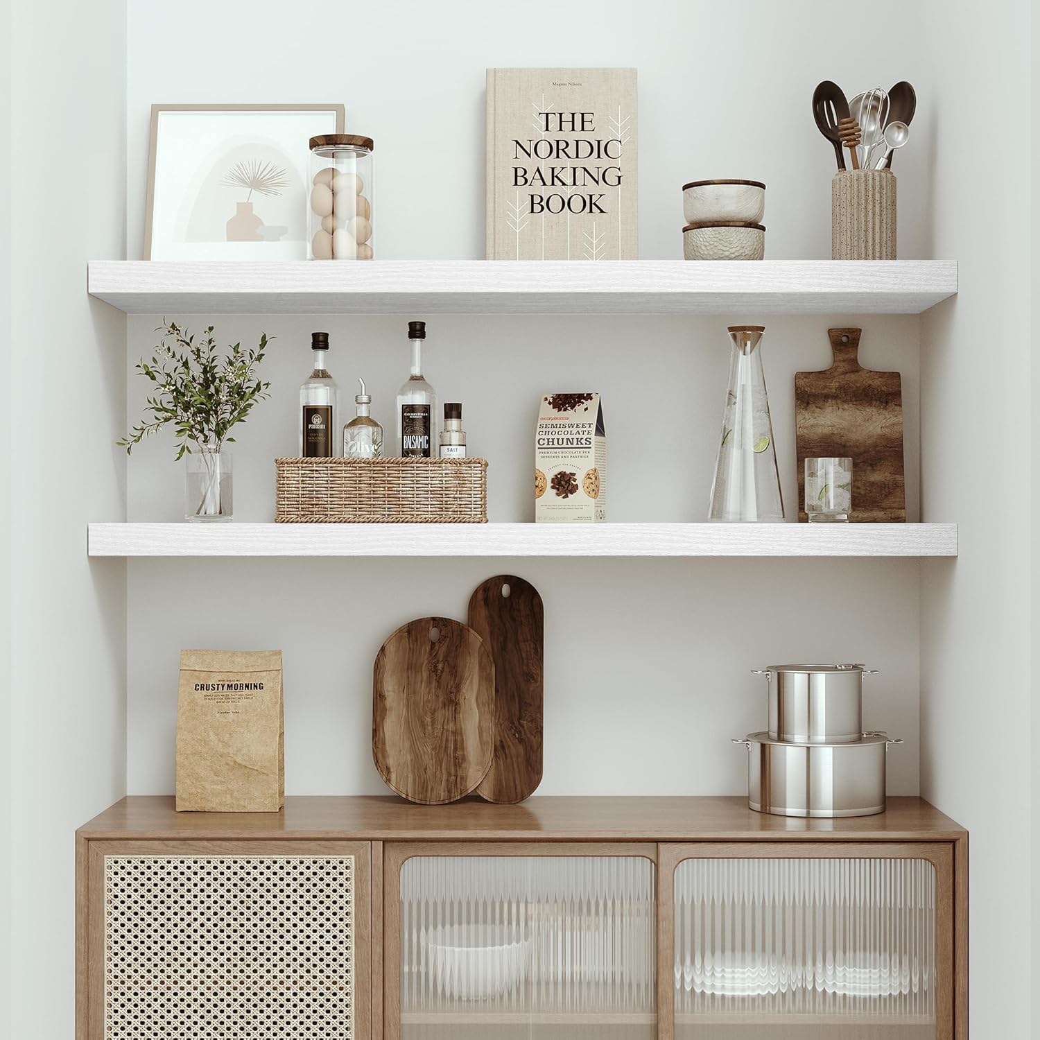 - Well-designed Floating Shelves - The rustic style floating shelves combining both practicality and style. These shelves offer a generous deeper and thicker surface, perfect for organizing daily sundries without taking up valuable floor space. The various of selected colours finish adds a cozy, natural element,display your art pieces on the wall to decorate your home, and make it full of aesthetic flare.