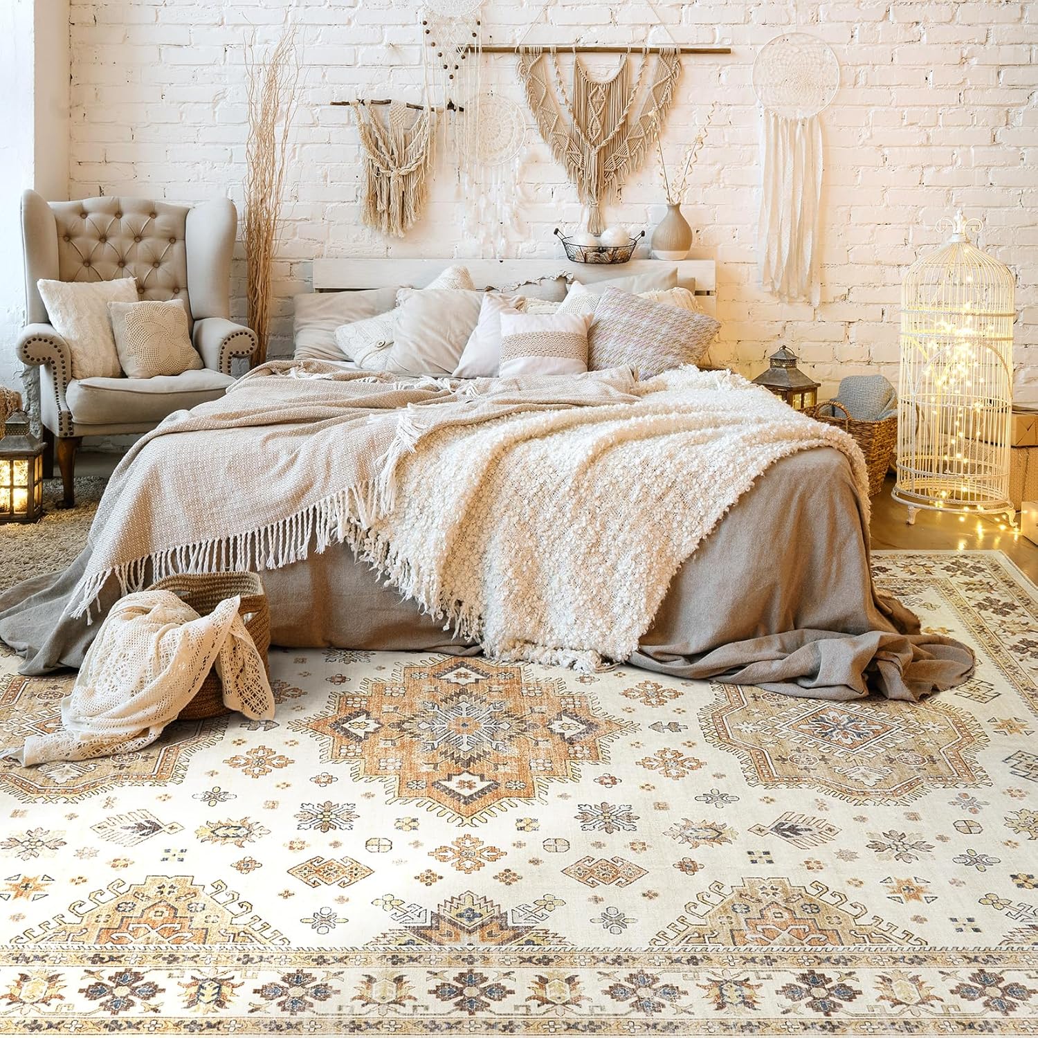 - Vintage Distressed Rugs for Living Room: Add warmth and cozy to your home with our distressed floral living room rug. Featuring a brown beige and orange color scheme, this rug complements your interior style, enhancing the overall aesthetic appeal of your living space. And the carpet is suitable for most home spaces, such as dining room, living room, bedroom, study room, nursery Room, home office, etc