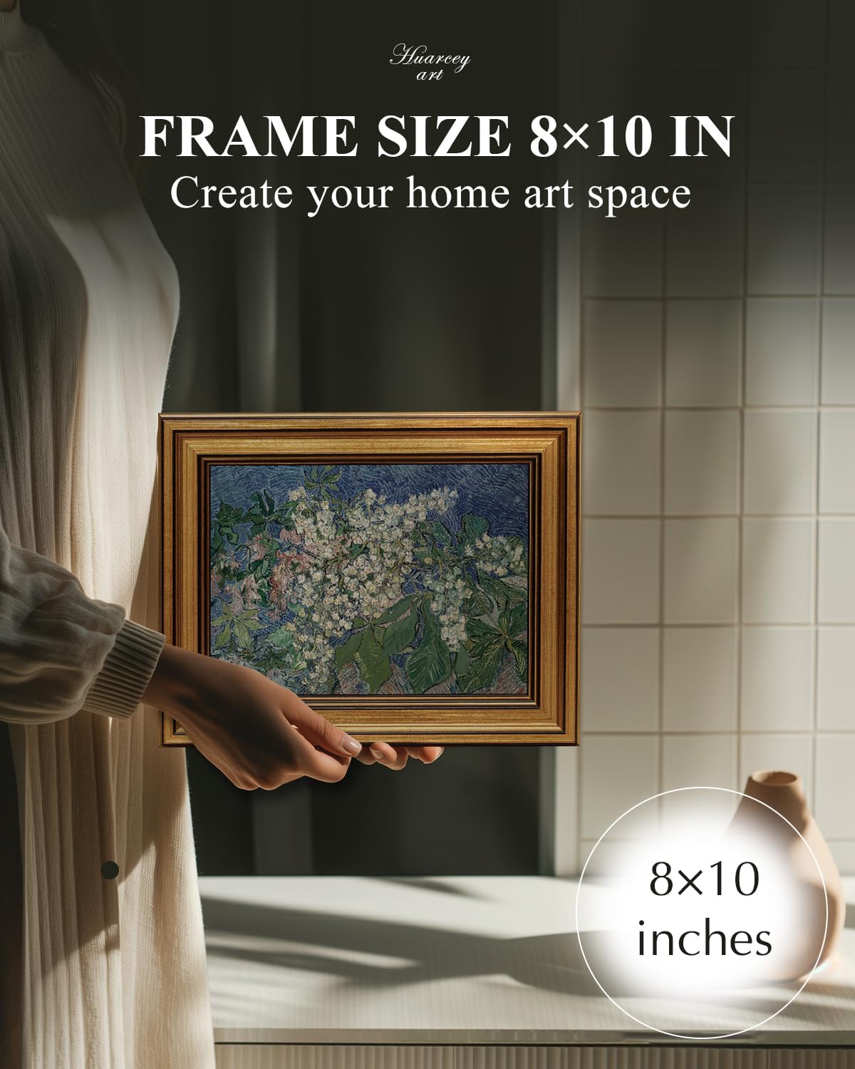 HUARCEY Gold Framed Vintage Wall Art for Living Room, Flowers Painting Canvas Prints Shelf Decor for Kitchen, Van Gogh Bedroom Wall Art, Christmas Gifts for Friends or Family ( Chestnut Branches 8"x10" )