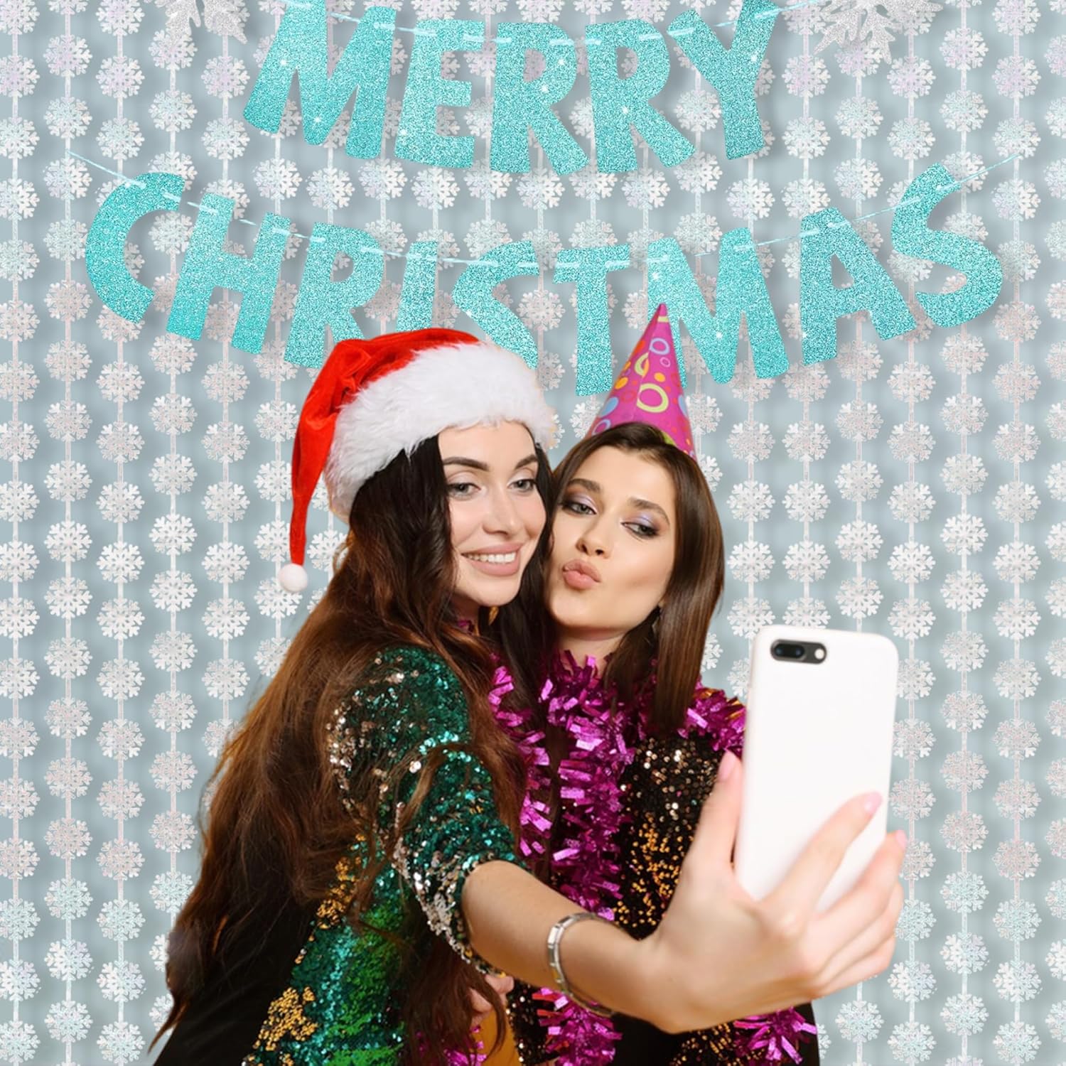 BRAVESHINE Silver Party Snowflake Backdrop - 2 Pack Hanging Foil Fringe Snow Flakes Party Streamers Curtain for Christmas Winter-Themed Frozen Birthday Baby Shower Holiday New Year Party Decorations