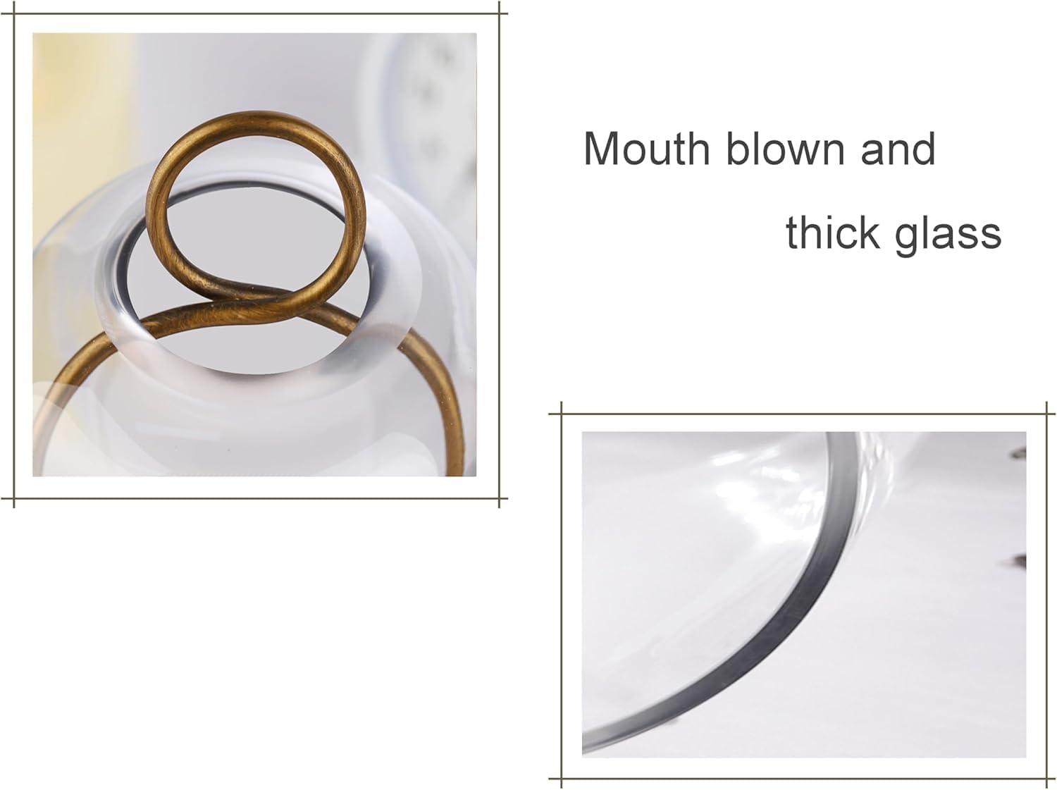 20" High Versatile Modern Metal Hurricane Lantern with Handmade Sturdy Glass Dome for Pillar Candle & Plants (Brass, 7.5"x20")