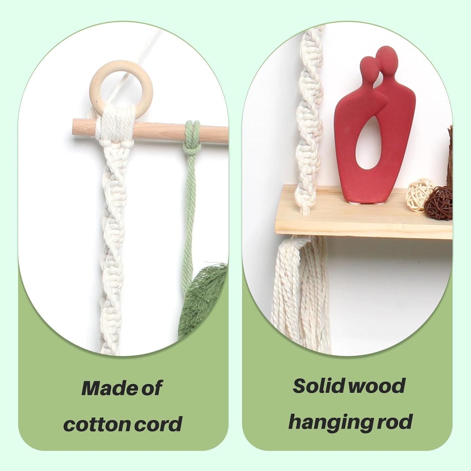 - 【Chic Style】:This macrame wall hanging decor is leaf-shaped,simple and elegant design,suitable for a variety of decorative styles, macrame wall shelf organizer can be used as a plant stand,room wall shelf for collectibles,photos,candles and books. Can add a sense of layering and warmth to your space, and bring you a better quality of life.