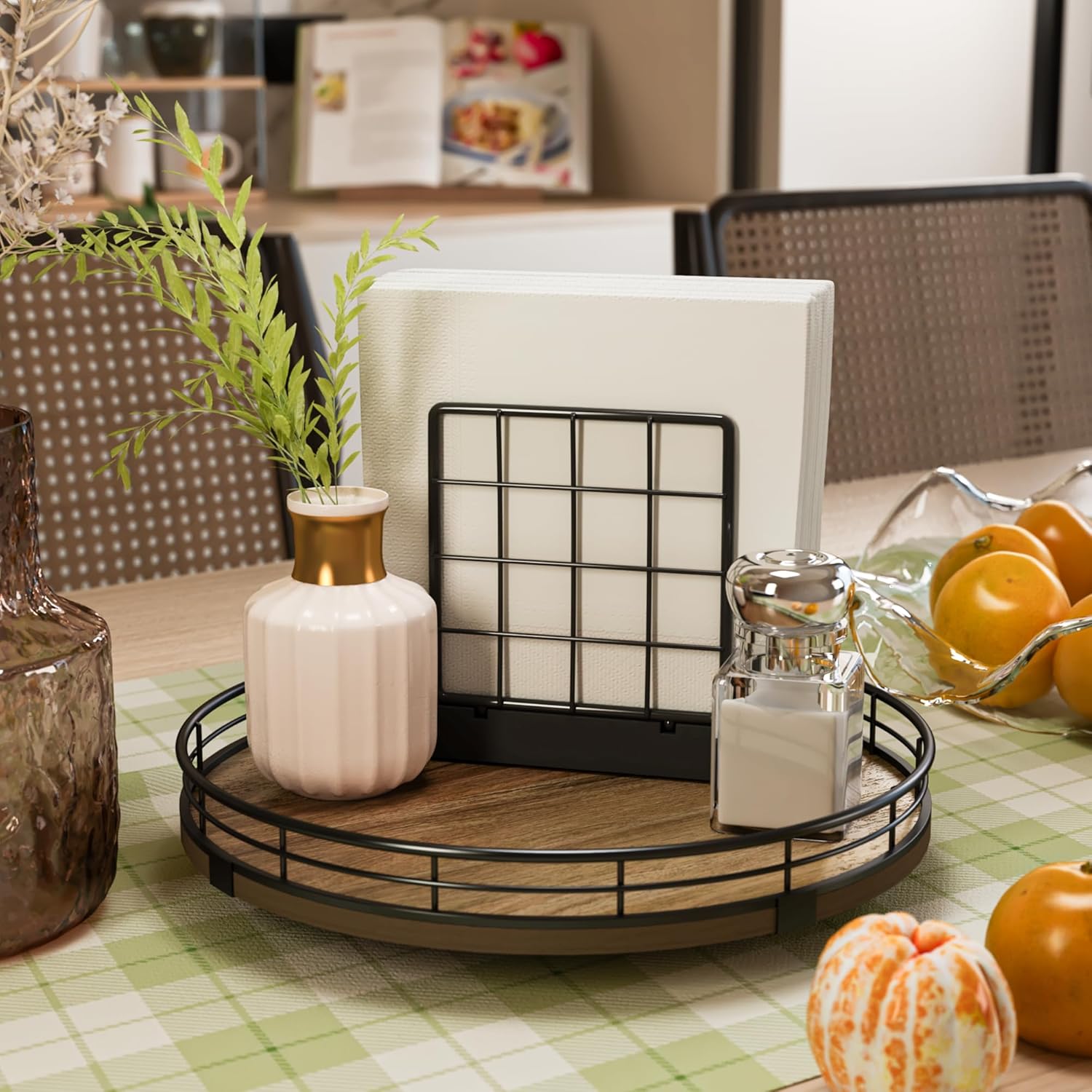 - Exquisite Texture- A turntable to meet your many home needs. Place it in your cabinet to easily store and access food, condiments, cans, medicines and more. As a coffee table tray, perfect for displaying napkin holders, vases, candles. Use it as a bathroom vanity tray to store lotions, perfumes, cosmetics, keep your life organized!
