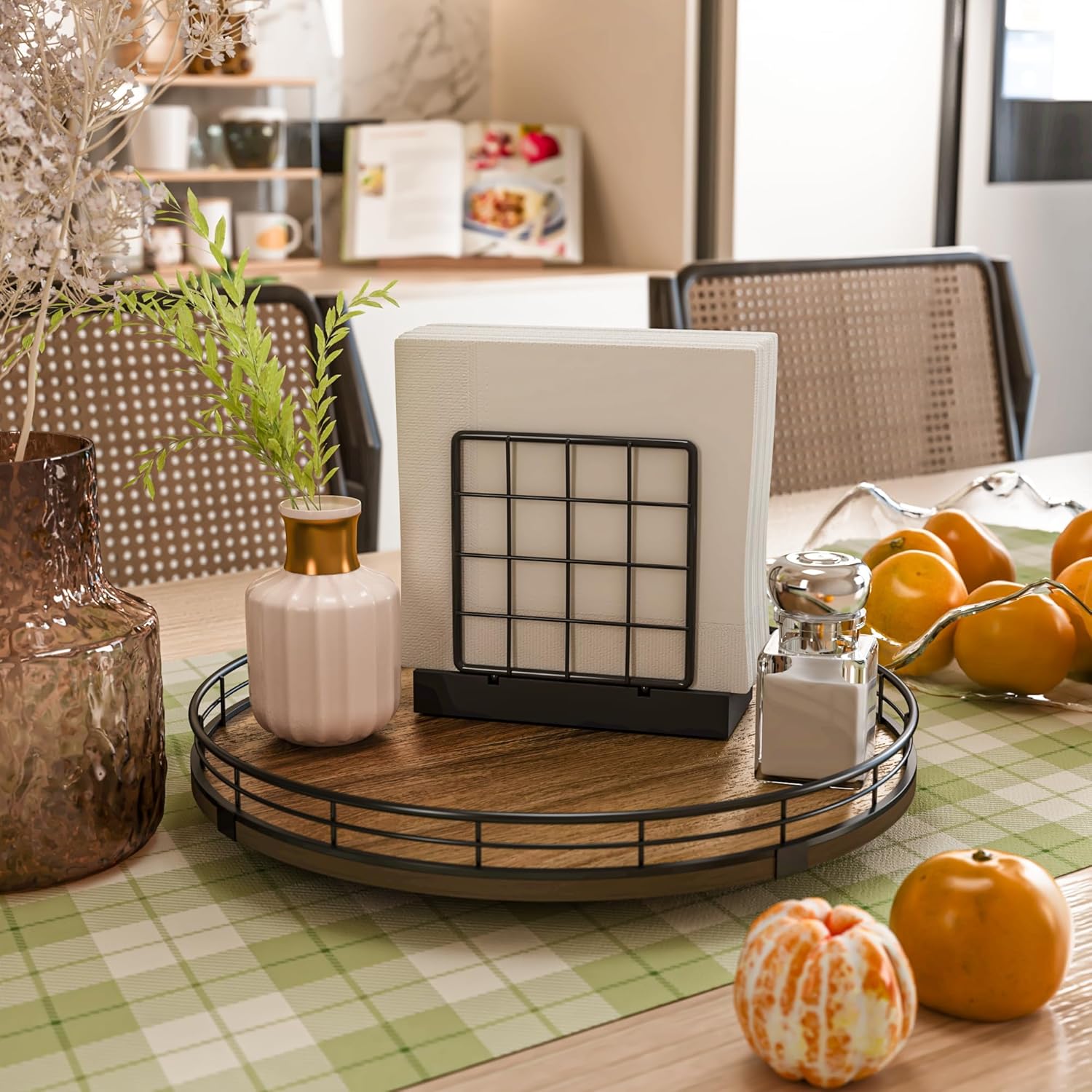 - Exquisite Texture- A turntable to meet your many home needs. Place it in your cabinet to easily store and access food, condiments, cans, medicines and more. As a coffee table tray, perfect for displaying napkin holders, vases, candles. Use it as a bathroom vanity tray to store lotions, perfumes, cosmetics, keep your life organized!