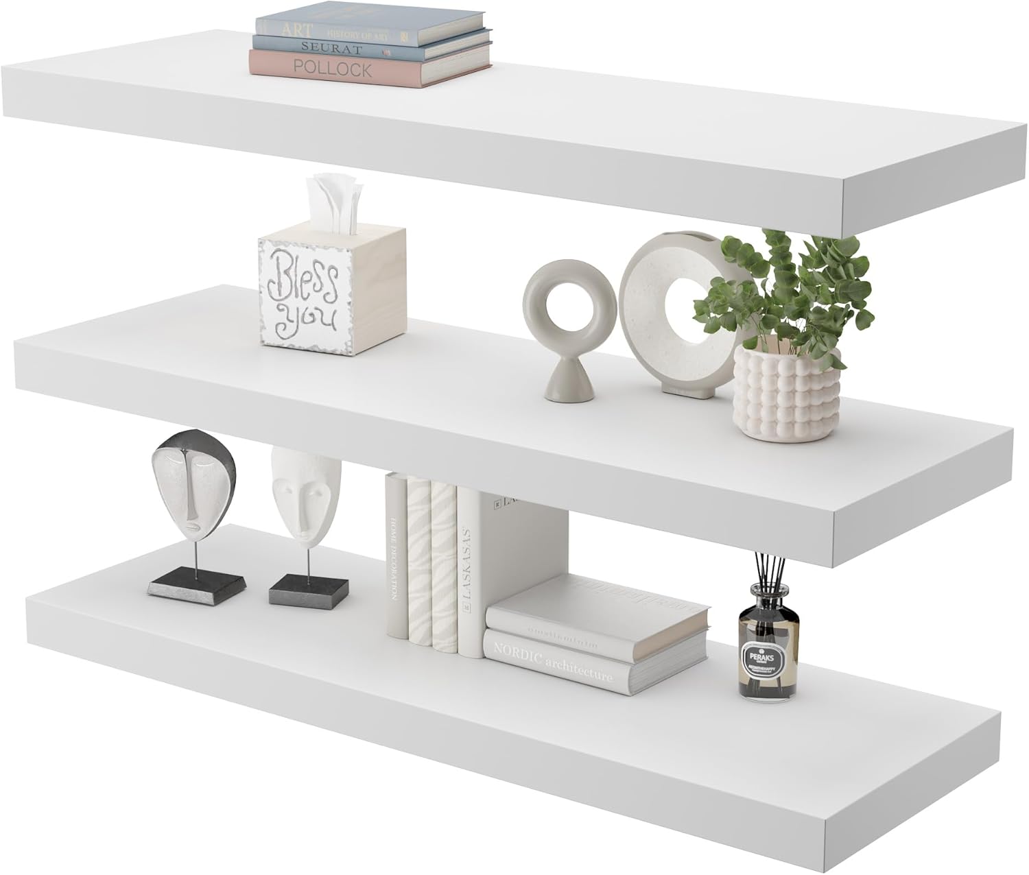 Large Floating Shelves for Wall Set of 3 Wooden Wall Shelves 36 in x 12.75 in x 2 in Room Decor Long Shelf with Invisible Wall Mount Bracket for Bedroom Kitchen Living Room White