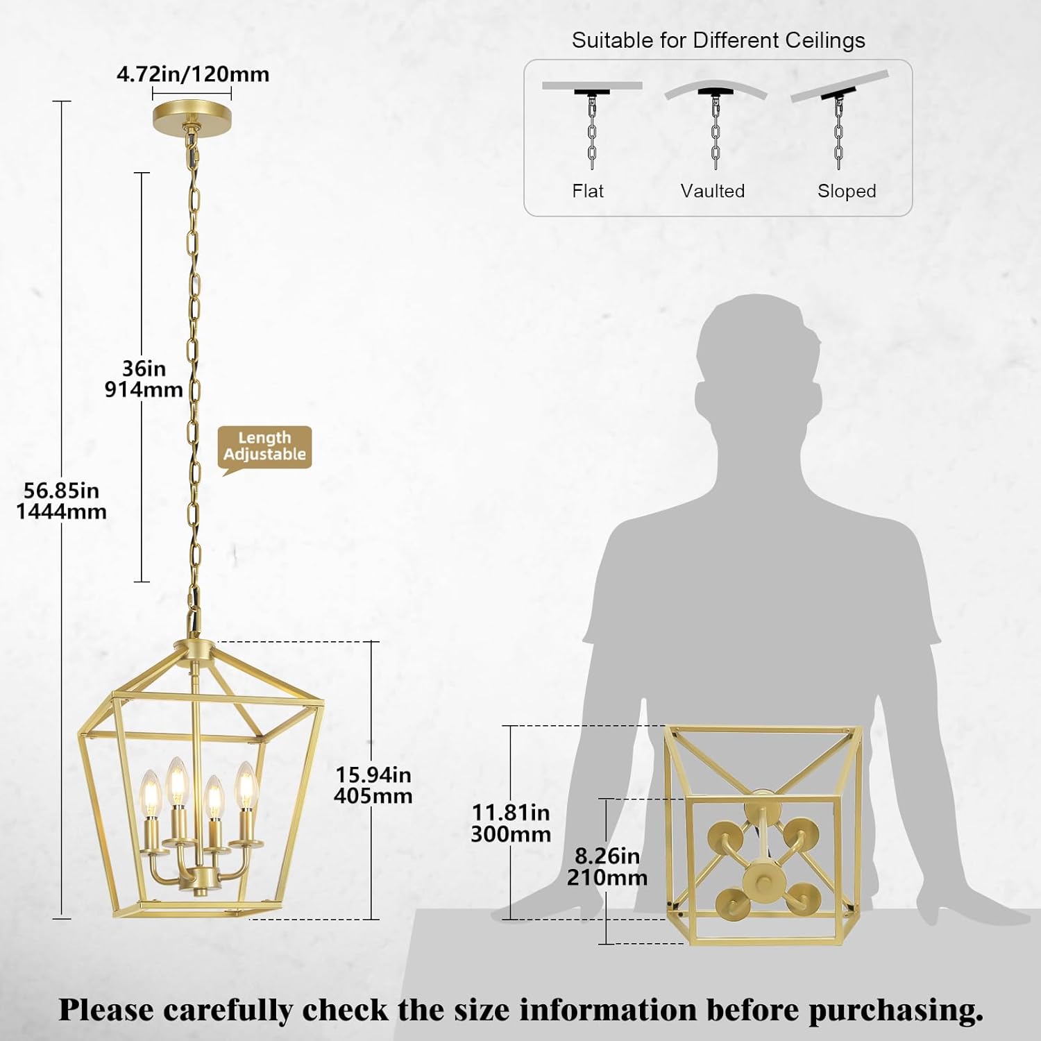 - Gold and Stylish Appearance: Featured with gold center candlestick and geometric outward appearance, the geometric lantern chandelier is a wonderful addition to add industrial touch to your home décor. Artistic and eye-catching, it can perfectly blend in any place such as bedroom, living room, bathroom, dining room, hallway or kitchen island (indoor use only)