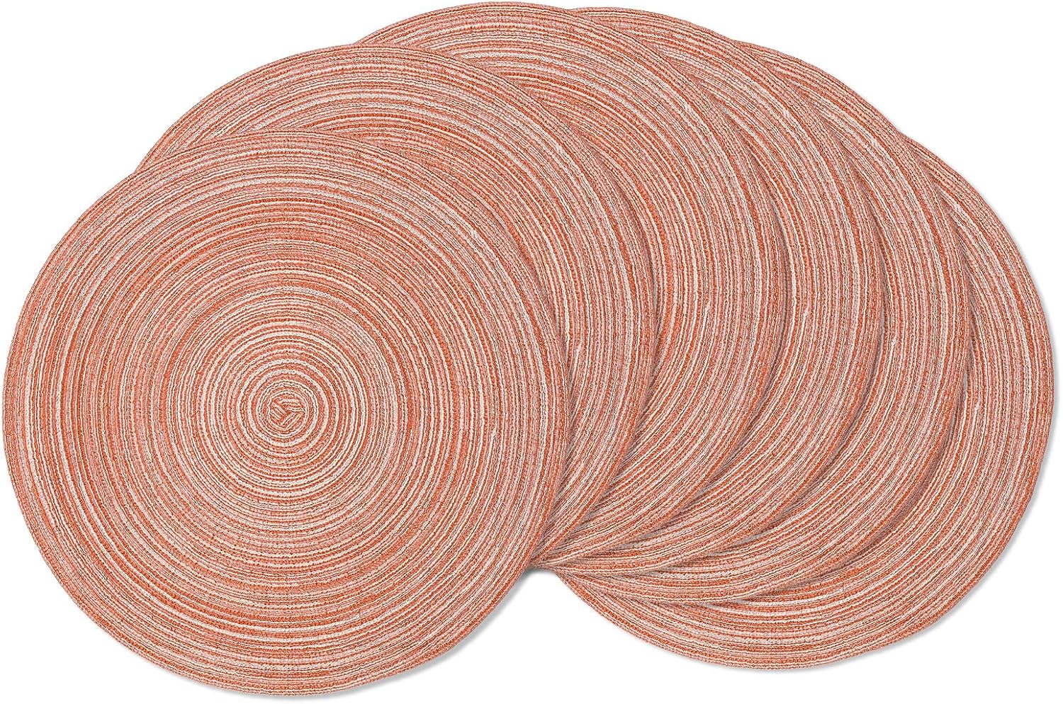 AHHFSMEI Round Braided Placemats Set of 6 Round Table Mats for Dining Tables Natural Woven Heat Resistant Place mats 15 Inch (Light Orange)