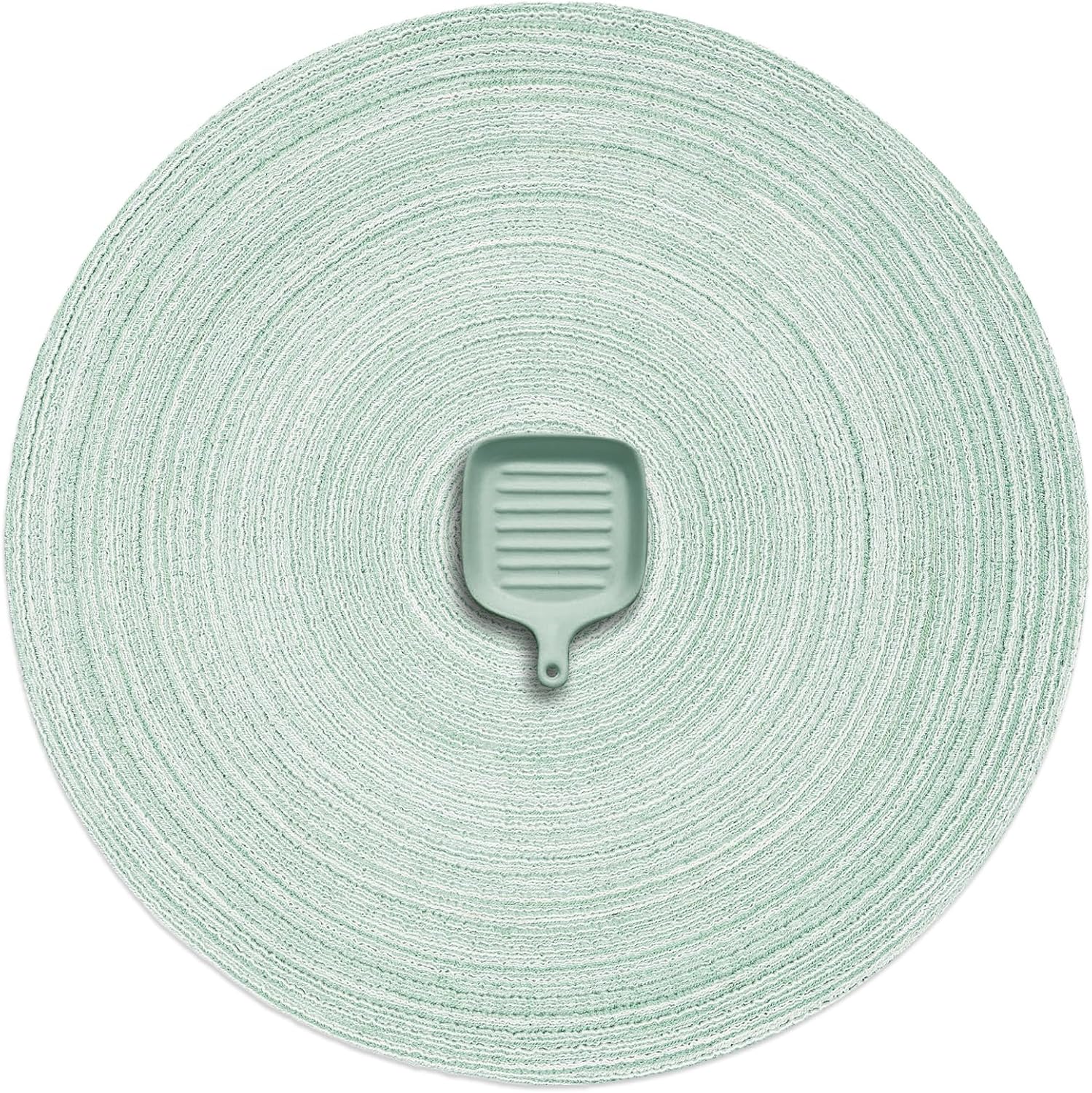 AHHFSMEI Round Braided Placemats Set of 6 Round Table Mats for Dining Tables Natural Woven Heat Resistant Place mats 15 Inch (Fog Green)
