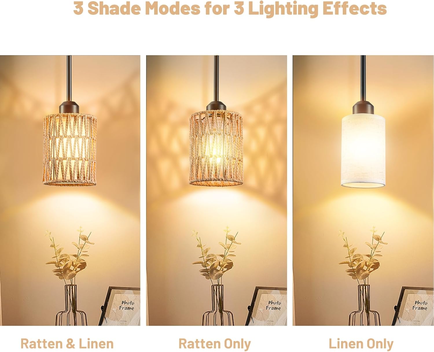 - Versatile 2-in-1 Design: Transform your space with the OUVR Pendant Light, a versatile rattan lamp hanging light fixture that features a unique combination of woven rattan and linen shades.OUVR Pendant Light is meticulously crafted with a 4.75-inch diameter rattan chandelier shade, exuding a rustic yet modern charm. The removable lampshade allows for easy cleaning and customization, ensuring your light fixture always looks its best.