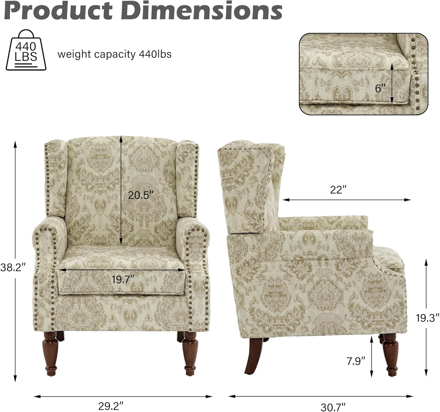 - Attractive Printed Pattern Chair - This armchair features nailhead trim, rolled armrests, vintage wooden legs and a beautiful patterned design for a traditional and chic look. Ideal for waiting room, living room, bedroom, dressing room, dressing room, office, reception room.